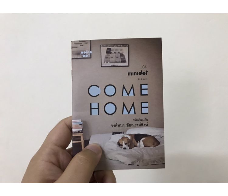 รีวิวเว้ย (248) สั่งซื้อหนังสือชุดหนึ่งจาก godaypoets และเมื่อเปิดห่อหนังสืออกก็พบกับหนังสือเล่มน้อย ที่เราเองเห็นครั้งแรกแล้วก็ไม่คิดว่ามันเป็นหนังสือ (คิดว่าเป็นเอกสารอ่านประกอบอะไรสักอย่าง) พอหยิงขึ้นมาดูใกล้ ๆ ก็เห็นข้อความที่ปรากฎอยู่บนหน้าปกของหนังสือเล่มนี้ เขียนเอาไว้ว่า "COME HOME กลับบ้านกัน" และมีข้อความเล็ก ๆ เขียนไว้บนคำดังกล่าวว่า "04 minidot" เข้าใจว่านี่น่าจะเป็นหนังสือเล่มเล็กของ minidot ซึ่งผลิตออกมาเป็นลำดับที่ 4 ตามเลขรหัสที่ระบุเอาไว้ว่า "04"