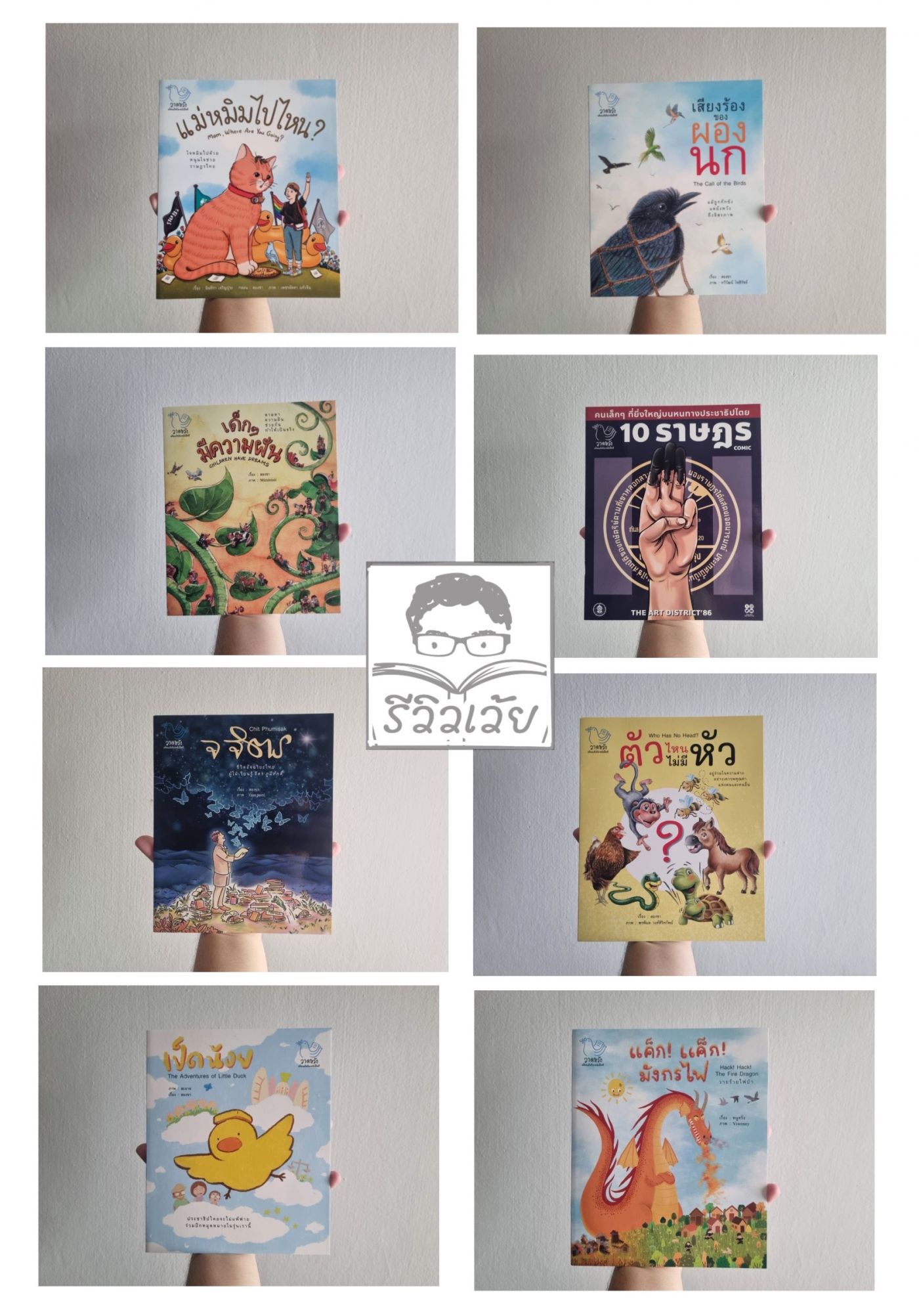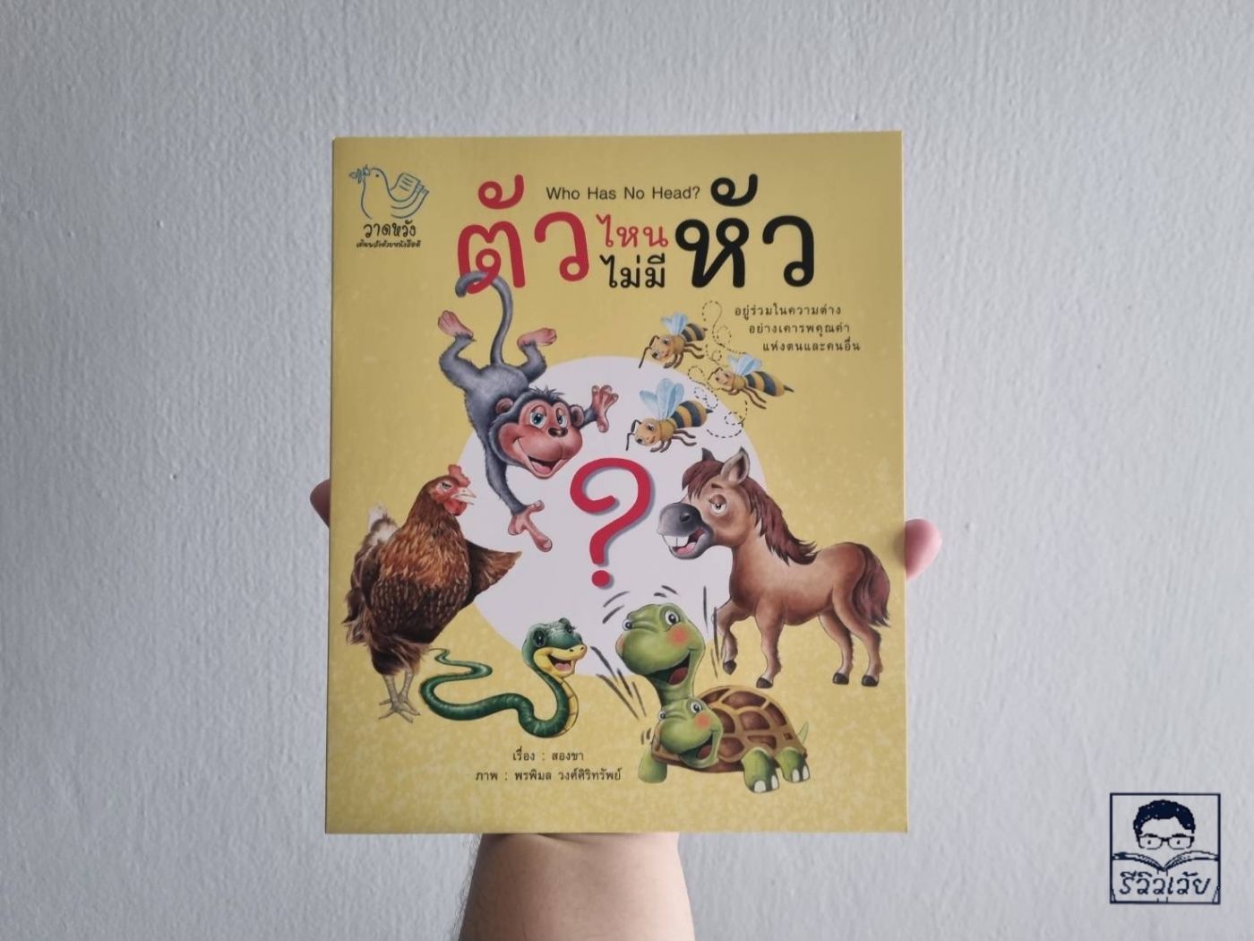 (6) ตัวไหนไม่มีหัว : คำโปรยบนปกหน้าของหนังสือนิทานเล่มนี้เขียนเอาไว้ว่า "อยู่ร่วมกันในความต่าง อย่างเคารพคุณค่าแห่งตนและคนอื่น" นิทานเล่มนี้บอกเล่าเรื่องราวของพยัญชนะไทยตั้งแต่ ก. - ฮ. โดยมีการหยิบเอาเรื่องของการ "มีหัวหรือไม่มีหัว" มานำเสนอได้อย่างน่าสนใจ เพราะนอกจากจะทำให้ผู้อ่านจดจำเรื่องราวของพยัญชนะไทยได้แล้ว ยังช่วยให้เราเข้าใจขึ้นอีกด้วยว่าพยัญชนะทุกตัวที่แตกต่างกันก็เพื่อให้ประกอบสร้างขึ้นมาได้เป็นคำ สำนวน ประโยค บทความกระทั่งหนังสือ เมื่อ้ป็นเช่นนั้น "ความแตกต่าง" จึงไม่ใช่เรื่องแปลกแยก หากแต่ความแตกต่างมักจะสรรค์สร้างสิ่งใหม่ ๆ ได้เสมอ