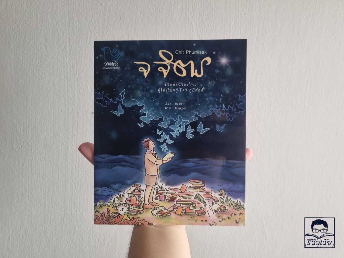 (7) จ จิตร : หนังสือนิทานที่บอกเล่าเรื่องราวของ "ปัญญาชนสยาม" คนสำคัญอีกคนหนึ่งอย่าง "จิตร ภูมิศักดิ์" นักคิด นักเขียน ผู้สร้างผลงานที่ส่งผลสะเทือนต่อวงวิชาการไทยอย่างยาวนาน ถึงแม้นว่าลมหายใจสุดท้ายของเขาจะถูกดับลงด้วยน้ำมือของเจ้าหน้าที่รัฐ ในวันก่อนที่เขาจะอายุได้ 36 ปีเสียอีก เพียงเพราะเขายืนอยู่คนละฝั่งกับความเชื่อของ "รัฐ" และสิ่งที่เขาทำคือการตั้งคำถามต่อความคุ้นชิ้น ว่าสิ่งเหล่านั้นอาจจะไม่ใช่คำตอบสุดท้ายของ ความจริง ความดี ความงามก็เป็นได้ นิทานเล่มนี้บอกเล่าประวัติของจิตร ในฐานะภาพแทนของ "หนึ่งคนที่มีฝัน" ถึงแม้ว่าลมหายใจสุดท้ายจะดับลงตรงชายป่า แต่ความหวังและความฝันของจิตร ภูมิศักดิ์จะยังคงอยู่ไปตลอดกาล