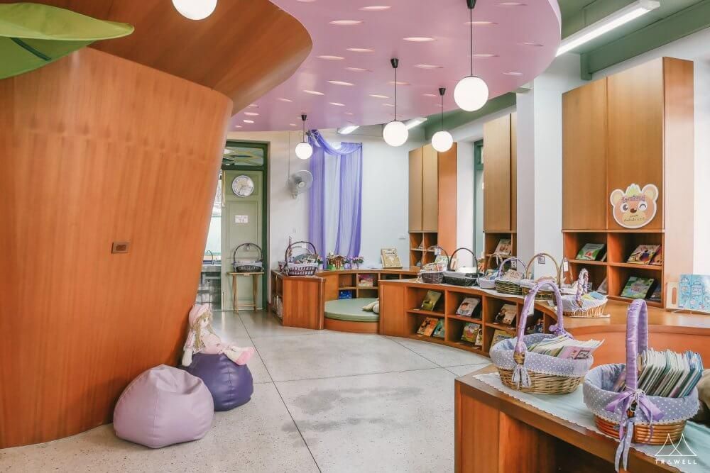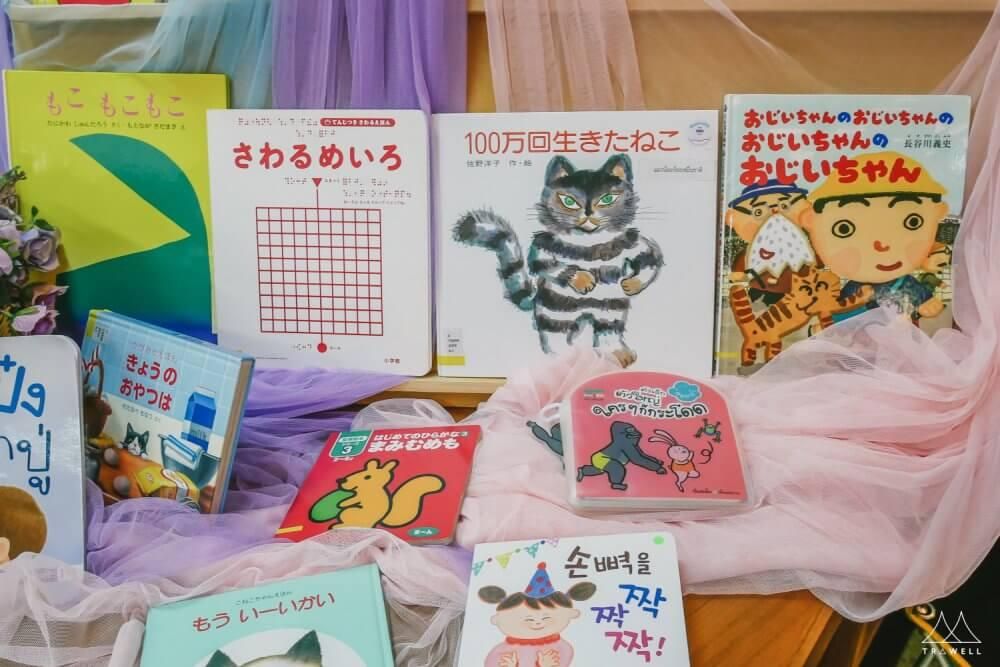 หนังสือของห้องสมุดเป็นหนังสือสำหรับเด็กแรกเกิดถึงอายุ 7 ปี ซึ่งมีหนังสือทั้งภาษาไทย และภาษาต่างประเทศ บรรยากาศรอบห้องสมุดมีความร่มรื่น ล้อมรอบไปด้วยต้นไม้ มีสนามเด็กเล่น รวมถึงสนามหญ้าเทียมที่กว้างขวางเหมาะแก่การนั่งอ่านหนังสือและใช้เวลาร่วมกันในครอบครัวมาก ๆ (ノ・ェ・)ノ นอกจากนี้ยังมีร้านกาแฟเล็ก ๆ เปิดให้บริการเครื่องดื่มสำหรับผู้ที่มาใช้ห้องสมุดอีกด้วย (สุดยอดไปเลย)