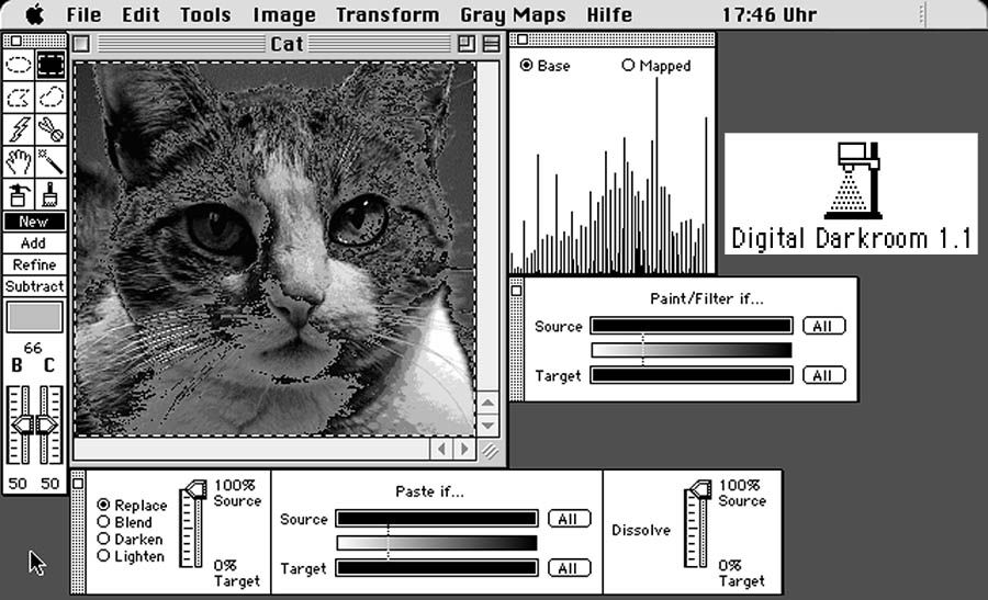 และการใช้งานโปรแกรม Photoshop สำหรับทีมงานนี้ มีการใช้งานครั้งแรก ๆ ในปกเทปของอัสนี - วสันต์ ติ๊ก ชิโร่ และ นีโน่ เมทนี โดยแรกเริ่มเดิมทีนั้น จะใช้โปรแกรม PageMaker ในการเรียงพิมพ์สำหรับงาน Desktop Publishing (การเรียงพิมพ์ระบบตั้งโต๊ะ) และแต่งภาพด้วยโปรแกรม DigitalDarkRoom และ PhotoMac (โปรแกรมแรกนั้นมีลักษณะการใช้งานคล้าย Photoshop และเอาไว้แต่งรูปขาวดำ) ซึ่งกระบวนการดังกล่าวจะใช้งานผ่านเครื่องคอมพิวเตอร์ Apple Macintosh (ซึ่งไม่แน่ใจว่าเป็นรุ่นไหน แต่การใช้งาน Photoshop ตอนนั้นจะใช้ Macintosh II) (สถิตย์ เลิศในเกียรติ, 2551)