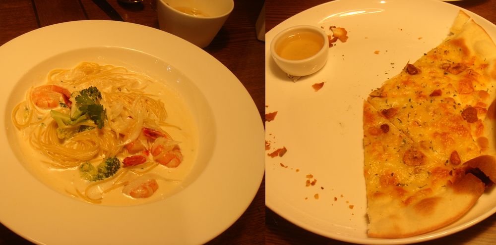 เธอถามฉันอย่างเจ้าบ้านที่ดีว่าฉันอยากทานอะไร ฉันตอบอย่างผู้มาเยือนที่ดีว่า ที่ไหนก็ได้ ..แต่.. ฉันขอแบบนั่งสบายๆ จะได้คุยกันได้แบบไม่ต้องตะโกน เธอแนะว่าให้ละร้านเนื้อย่างเอาไว้ก่อนซึ่งฉันเห็นด้วย ตอนนี้คาร์บอนไดออกไซด์ในตัวฉันมีมากพอแล้ว เธอพาฉันมุ่งหน้าไปยังร้านอาหารอิตาเลียนเงียบ สงบ สมใจนึกจริงๆ บรรยากาศสบายๆ เปิดเพลงเย็นๆเข้ากับอากาศที่เย็นกว่าตอนกลางวันพอสมควร