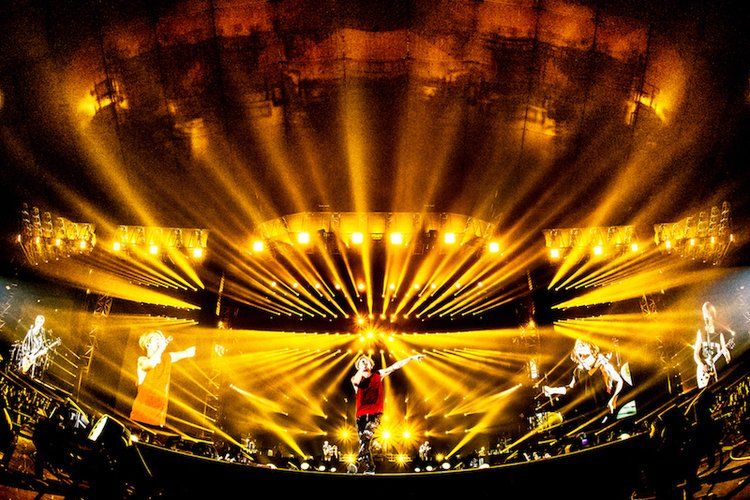 ขออธิบายเวทีก่อนมันก็จะมีเวทีใหญ่ปกติตรงกลางและมีทางเดินแบบแคทวอล์คหัวลูกศร ยื่นออกมาในโซนอารีน่าที่เป็นแอ่งหลุมเหมือนโซนบัตรหลุมบ้านเรา