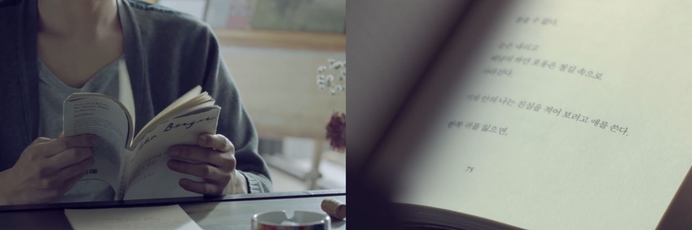 และในนาทีที่ 2:17 ได้ปรากฏบทกวีที่มีชื่อว่า "A View of Delft" ซึ่งเป็นส่วนหนึ่งในหนังสือ "And Our Faces, My Heart, Brief as Photos" ของ John Berger เช่นกัน เป็นมุมมองของผู้แต่งต่อภาพเขียนที่ชื่อว่า "View of Delft" โดยจิตรกรชาวดัตช์ Johannes Vermeer