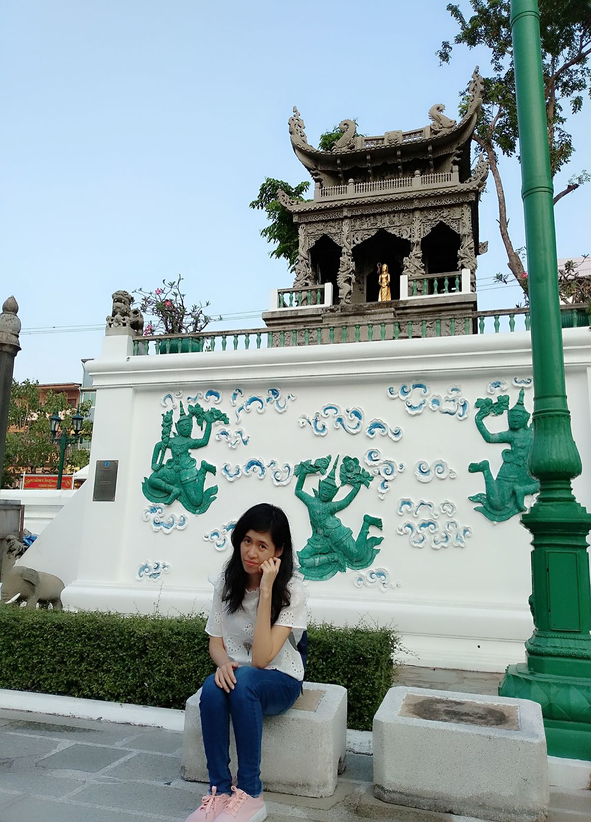 หนึ่งปีผ่านไป เรากลับมาที่นี่อีกครั้ง เพื่อคืนความสุขให้ตัวเอง เรา (ฉันกับแม่ เดินไปยังถนนราชดำเนิน เข้าไปยังซอยถนนดินสอ ผ่านศาลาว่าการกทม ไปยัง ถนนมหรรพ ก่อนที่จะหยุดที่หน้าประตูแพร่งสรรพศาสตร์ ไปตั้งสติตรงนั้น (ไปไหนดีวะ ) เพราะว่าไม่รู้จริงๆว่าจะไปรอพ่อที่ไหน จะเข้าไปเที่ยวย่านสามแพร่งก็กลัวว่าจะหาทางออกไม่เจอ เราจึงเดินกลับไปที่เทวสถาน (โบสถ์พราหมณ์) ไปรอพ่อที่นั่น เพราะ He ไปทำธุระแถวๆวิภาวดีและเราก็เริ่มเมื่อยแล้ว หลังจากที่รอมานานหลายช่วงโมง He ก็มา ก่อนที่จะชวนพวกเราไปลั๊ลลาที่หน้าเสาชิงช้า คราวนี้ He ขอเป็นนายแบบจำเป็น ยืนถ่ายรูปอยู่นาน ก่อนเข้าไปวัดสุทัศน์ หลังจากที่ He ไหว้พระเรียบร้อยแล้วก็ชวนฉันกับแม่เดินข้าไปด้านหลัง ด้วยความเบื่อ(ความชิวของพ่อ) ฉันกับแม่จึงดินออกมาทางประตูๆหนึ่ง เมื่อออกไปแล้ว ก็ได้พบกับ Unseen วัดสุทัศน์ นั่นก็คือ รูปปั้นต่างๆ และสถาปัตยกรรมแบบจีน เราแวะถ่ายรูปสักครู่ก่อนออกไปรอพ่อที่เสาชิงช้า เพราะเหนื่อยมากและฉันก็ไม่สบายตัวด้วย เมื่อคิดดีๆแล้วทำให้ฉันคิดว่า ทำไมฉันกับแม่ถึงไม่กลับบ้านก่อน พักก็ไม่ได้พัก แถมมานั่งทรมานตัวเองอีก น่าจะไปแค่ โลหะปราสาท อนุสรณ์สถานแล้ววกลับบ้าน เราน่าจะวางแผนให้ดีกว่านี้ แต่คิดไปคิดมา มันก็คุ้มเพราะมันทำให้ฉันได้เห็นอะไรที่ไม่เคยเห็น มาก่อน