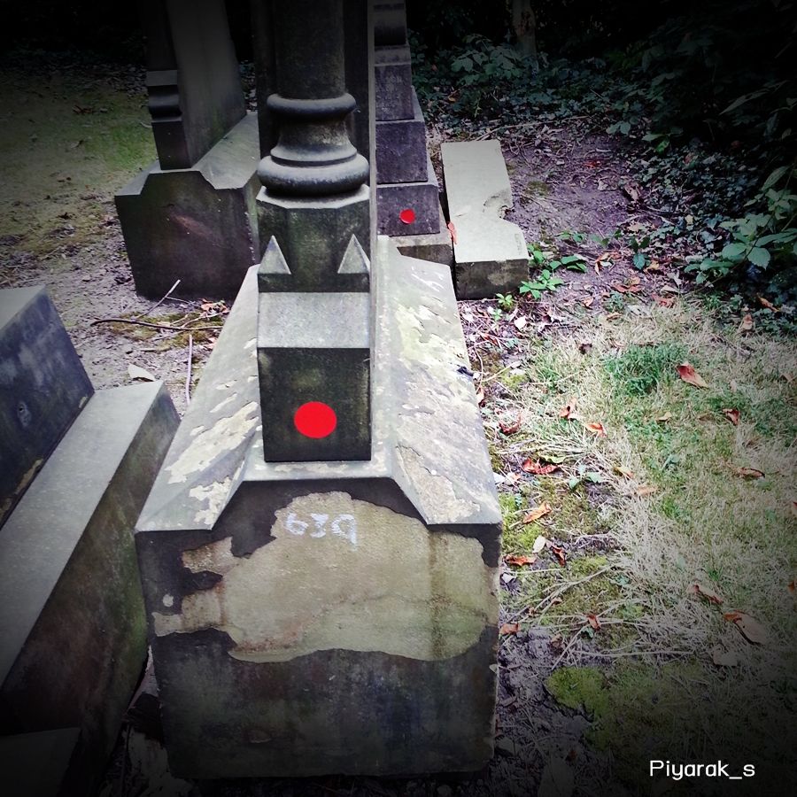 สติกเกอร์สีแดงที่ติดอยู่เป็นสัญลักษณ์บอกว่า คนที่มีชื่อบนป้ายมีส่วนร่วมในสงครามโลกครั้งที่หนึ่ง และบริเวณฐานของป้ายหลุมศพก็จะมีตัวเลขกำกับบอกเอาไว้ เพื่ออำนวยความสะดวกในการนับและค้นหา