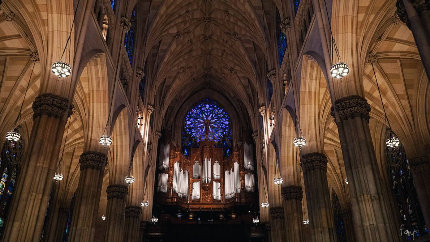 วิหาร St.Patrick เป็นศิลปะแบบ Neo-Gothic ตัวโบสถ์ทำด้วยหินอ่อนสีขาว ออกแบบโดยสถาปนิกชื่อ James Renwick ใช้เงินสร้างไปราว 850,000$ ของเมื่อ159ปีก่อน นี่ยังไม่รวมค่าตกแต่งภายใน ค่าออแกน ค่าเฟอร์นิเจอร์ต่างๆนานาซึ่งไม่รู้ว่ารวมทั้งสิ้นแล้วใช้งบประมาณไปทั้งหมดเท่าไหร่ แต่ที่รู้คือด้านใน สวยงามอลังการจนน้ำตาจะไหล