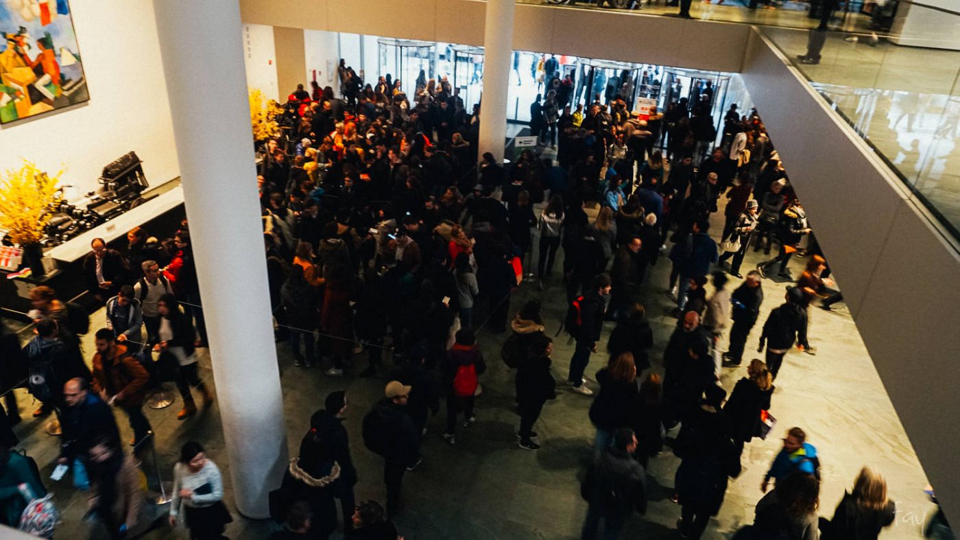ขากลับไปรับกระเป๋ากับเสื้อหนาวที่ฝากไว้ ใช้เวลาไม่นาน และพอเดินออกมาก็พบเจ้าหน้าที่แถวนั้นกำลังไล่แจกบัตรสำหรับคนที่เพิ่งมาอยู่ ปรากฏว่า 1.30 ชั่วโมงที่เราเดินไปนั้น พอออกมา มันไม่มีคิวแล้วจ้า ว้อยยย ความอ่านรีวิว ความแพนิคว่าคนจะเยอะ ความรีบมาต่อแถว ความยืนตากฝนปรอยๆอยู่เป็นสิบนาที แล้วก็ออกมาเพื่อจะพบว่ามึงไม่ต้องรีบมาก็ได้!!!