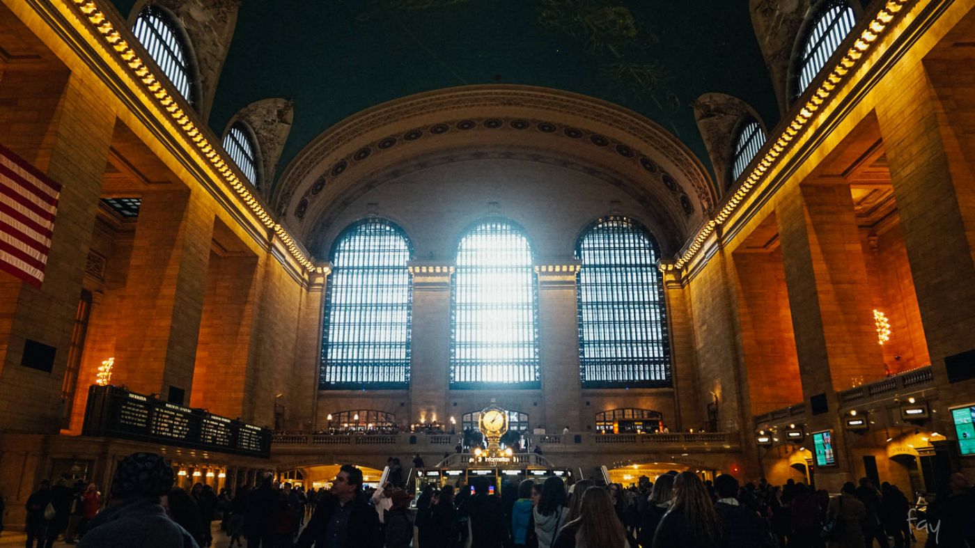 สถานี Grand Central Terminal เป็นสถานีที่ Grand สมชื่อ เปิดตั้งแต่ปี1903 นู้น อยู่แถวมิดทาวน์ของเกาะแมนฮัตตัน นอกจากจะเป็นศูนย์กลางการเดินทางของรถไฟหลายๆสายที่กระจายไปรอบนิวยอร์กแล้วก็ยังขึ้นชื่อว่าเป็นสถานีรถไฟที่สวยที่สุดในโลกอีกด้วย ตัวโถงกลางสร้างด้วยหินอ่อน เพดานโค้งเป็นจิตรกรรมรูปกลุ่มดาวจักรราศรี คลาสสิกเว่อวังอลังการ สิบสิบสิบไปเลยแจร้ แต่ด้วยความกะโหลกกะลาของกล้อง จึงไม่สามารถถ่ายรูปกลุ่มดาวจักรราศรีมาอวดได้ ดังนั้นเราจึงยืม Google มาให้ทุกคนได้ดูแทน ตามลิ้งค์นี้ https://goo.gl/nwDgw1