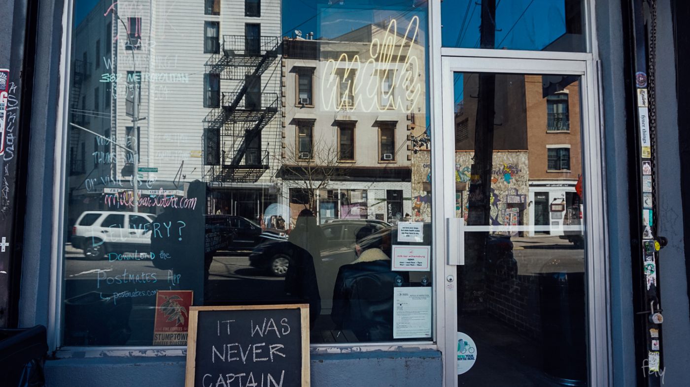 ร้านของคริสติน่าชื่อ Milk Bar นางขายขนมกรุบกริบจำพวก เค้ก ซีเรียลมิลค์ ไอติมซอฟท์เสิร์ฟ cracked pie นางมีหลายสาขา ส่วนสาขาที่เราไปคือ Williamsburg เป็นร้านเล็กๆคูหาเดียว มีที่นั่งน้อยนิด คิดดูว่ามองจากฝั่งตรงข้ามยังไม่เห็นเลย !