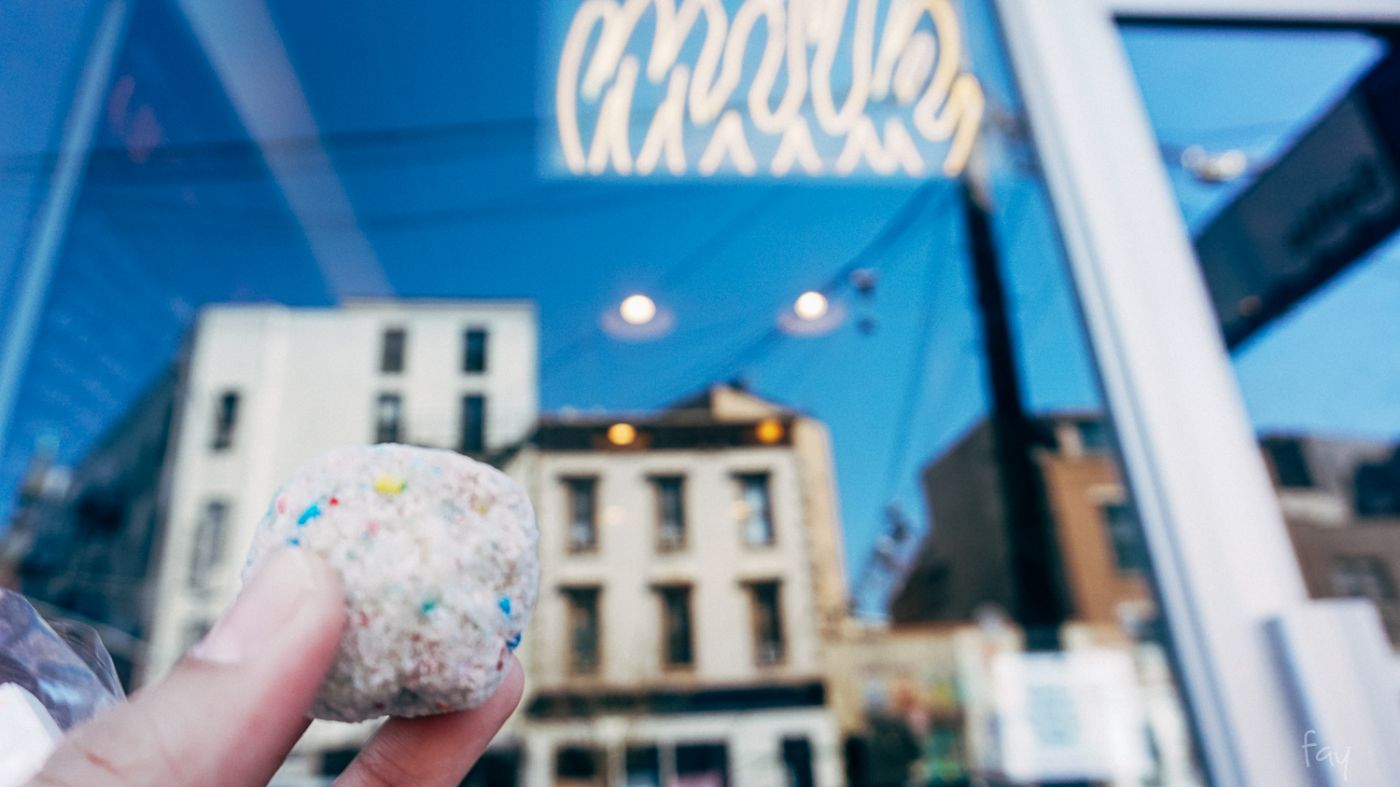 เมนูดังของนางคือ Birthday Cake เป็นเค้กใส่ confetti หรือไอเมล็ดน้ำตาลสีๆที่โรยตามขนมเค้กบ้านเราแหละ ก้อนนึงราคาราว 40$ อีกเมนูเป็น Cracked Pie และเหล่าไอติมซอฟท์เสิร์ฟ โรย confetti หรือ คอนเฟลก หน้าตาน่ากิ๊นนน ใจอยากลองหลายอย่าง แต่ด้วยงบประมาณจำกัดก็เลยซื้อ B'Day Truffle กับนม Cereal Milk ของนางมาชิม
