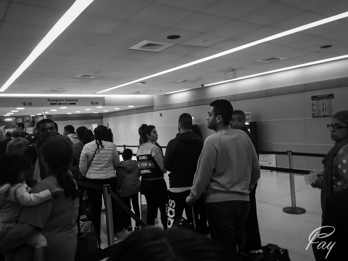 ระหว่างช่องตม.ที่เป็นเคาเตอร์กับเครื่องที่ดูคล้ายๆตู้ATM ตรงนั้นมีเจ้าหน้าที่อยู่คนเดียว ที่ดูเหมือนนางจะไม่ค่อยต้อนรับเราเท่าไหร่ ตามประสากะเหรี่ยงแปลกหน้า ก็เลยไปต่อแถวเคาเตอร์ ตม. เพราะคิดว่าเครื่องนั้นมันคงใช้ได้กับพวกมีกรีนการ์ดไรงี้มั้งนะ คิดเยอะไปอีก สุดท้ายนางก็ไล่กลับมาให้มาต่อแถวตรงตู้ที่เหมือน ATM เอ้า เสียเวลาไปอีก
