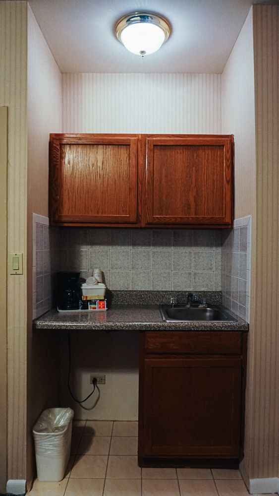 มีซิงค์ล้างจานพร้อมเคาเตอร์ครัว แต่ไม่มีอุปกรณ์อื่นๆให้นะ ตู้เย็นก็ไม่มี กระติกน้ำร้อนก็ม่ายเม
