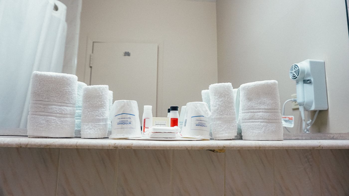 ห้องน้ำ ไม่มีอะไรมากนอกจาก แชมพู สบู่ โลชั่น และหมวกอาบน้ำ อ้อ ไดร์เป่าผมแรงมาก เฮอริเคนระดับ10