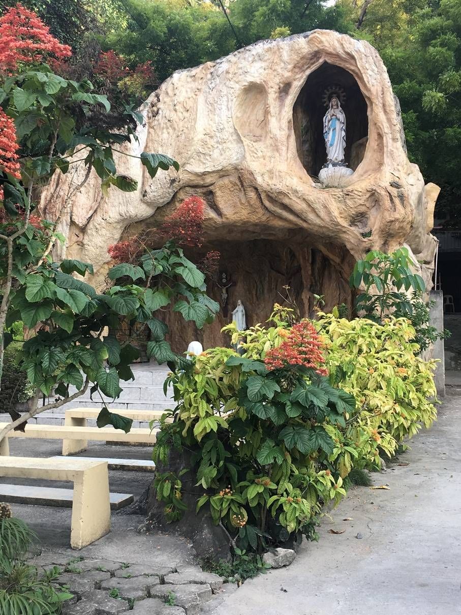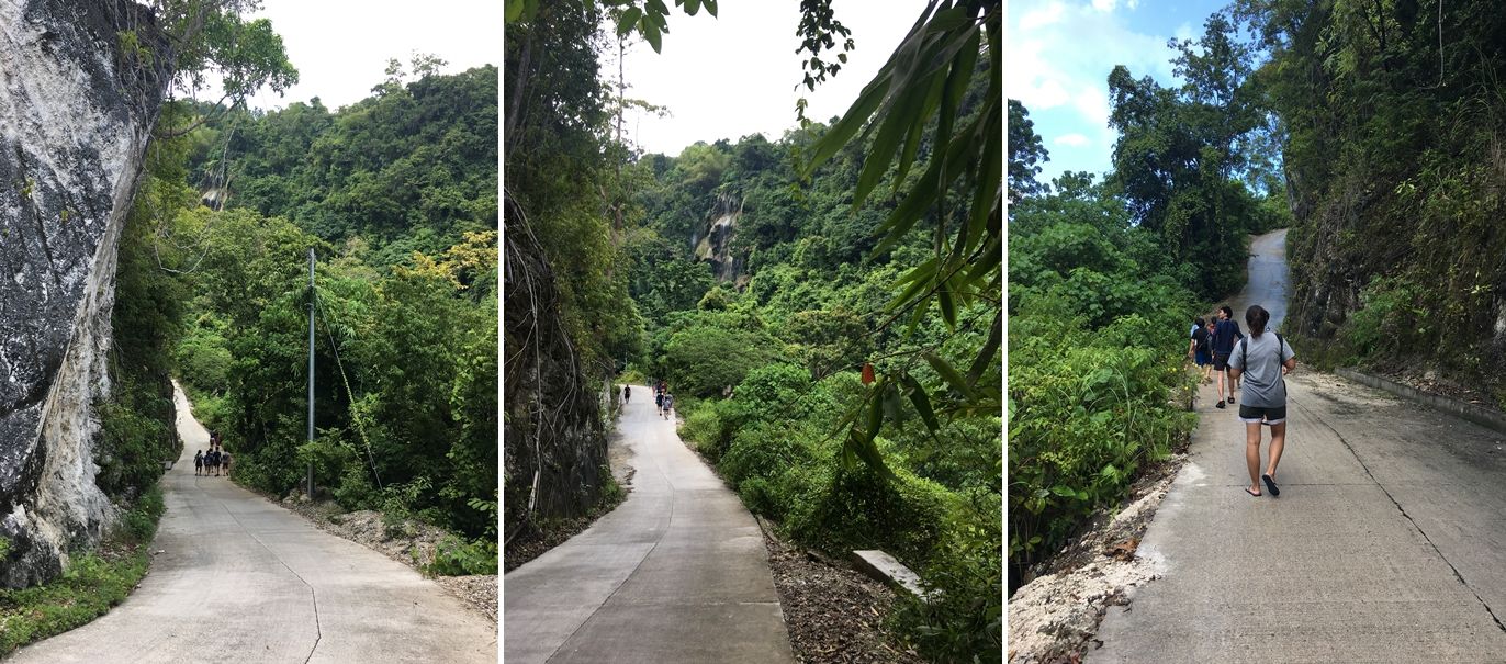 เดินไปทางถ้ำแม่พระ เข้าไปตามทาง จ่ายค่าเข้า 25 Peso
