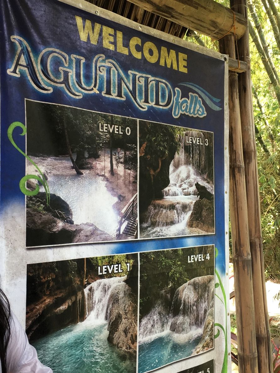 นั่งรถไปอีกชั่วโมงนึง ทางเข้าแคบมาก แถมดูไม่ค่อยเจริญ สต๊าฟชาวจีนของอีกโรงเรียนที่ไปด้วยกันก็บอกน่ากลัว จนถึงทางเข้าน้ำตกอีกครั้ง ในชื่อน้ำตก Aguinid Falls ...