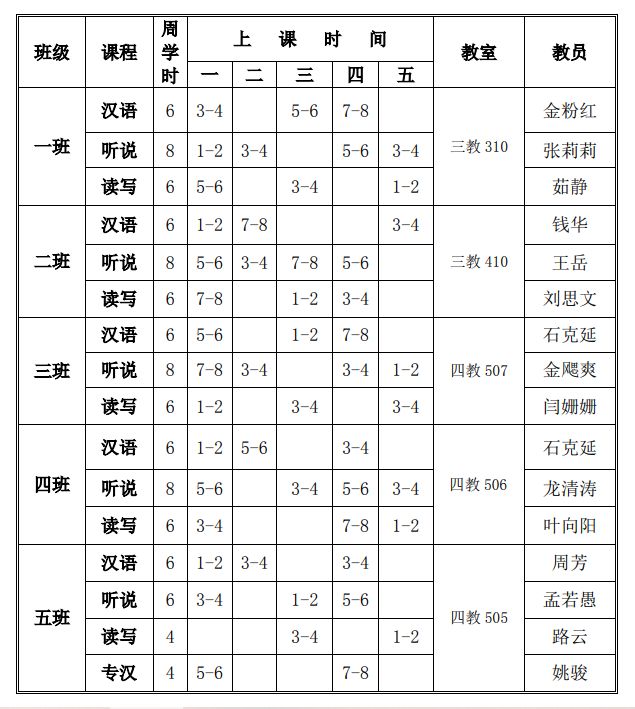 - ห้อง 5 เรียน 汉语、听说、读写、专汉