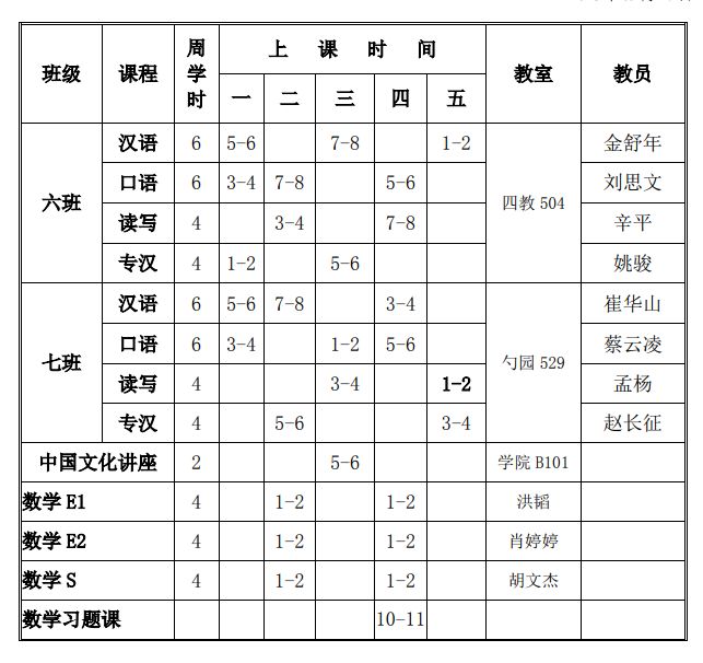 - ห้อง 6-7 เรียน 汉语、口语、读写、专汉