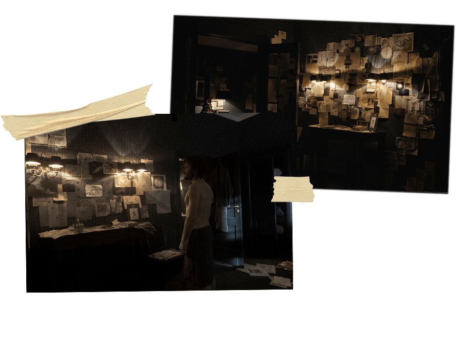 โนอาห์เป็นตัวละครที่มีปริศนาซุกซ่อนอยู่มากมาย เขาสวมชุดนักบวชแต่ดูเหมือนไม่ค่อยเชื่อในพระเจ้า แผ่นหลังของเขาสักลายที่ดูเหมือนแผ่นจารึกที่มีตัวอักษรภาษาละตินเขียนอยู่ เขาพกสมุดที่มีรูปสามเหลี่ยมซ้อนสามเหลี่ยมเชื่อมโยงกันและเราเห็นมันอยู่ทุกที่ ไม่ว่าจะบนแผ่นเหล็กในถ้ำ บนหนังสือการย้อนเวลา หรือบนกระดาษที่ถูกแปะเอาไว้ในห้องโรงแรมหมายเลข 8