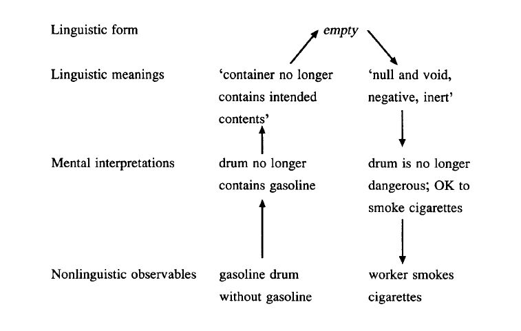 1. ความหมายทั้งสองความหมายมีอิทธิพลต่อกัน โดยความหมายที่ชัดเจนกว่า (concrete) จะไปมีอิทธิพลต่อความหมายที่มองเห็นไม่ชัดเจนหรือเป็นนามธรรมกว่า (abstract) ซึ่งในที่นี้เราตีความจาก "ไม่มีอะไรบรรจุอยู่" ซึ่งเห็นได้ชัดเจนกว่า ไปสู่ "ว่างเปล่า" ที่เป็นนามธรรมกว่า