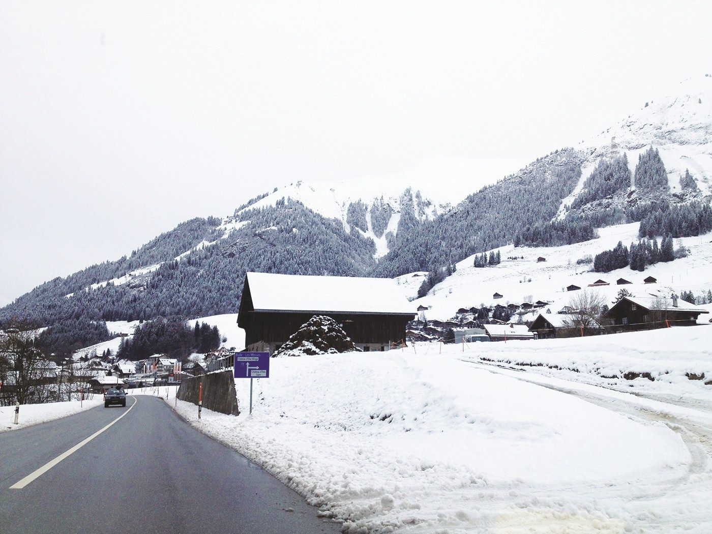 ในวันหยุดสุดสัปดาห์หนึ่งที่พิเศษจนต้องฉลอง ฉันจึงจองโรงแรมสองคืนศุกร์เสาร์ แล้วขับรถเวลาเย็นหลังเลิกงานมุ่งหน้าไปชตาดพร้อมอุปกรณ์สกีที่ท้ายรถ จากซูริกขับรถไปสองชั่วโมงครึ่ง พ้นเบิร์นเมืองหลวงมาหน่อยก็แยกออกจากไฮเวย์ใหญ่ เส้นทางเริ่มผ่านหมู่บ้านน่ารักๆ ตามทางเลาะไปในแนวเทือกเขาใหญ่ จนเข้าเขต Saanenwald หรือกลุ่มเทือกเขาที่เป็นแหล่งสกีทั้งแถบของชตาด