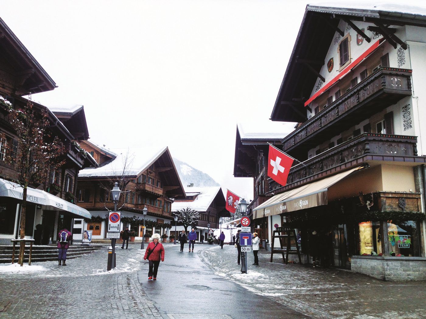 ด้วยความสะดวกแบบนี้แหละ ฉันจึงชอบเลือกพักโรงแรมในหมู่บ้านรอบๆ ชตาดที่อยู่บนเขาสกี มากกว่าที่จะพักโรงแรมในตัวชตาด เพราะจริงๆ แล้วทุกยอดเขามีลิฟต์เชื่อมกันหมดถึง 62 ตัว จะพักหมู่บ้านไหนก็สกีไปสำรวจทุกเขาถึงกันได้หมด ถ้าหากว่ามีเวลานะ เพราะระยะทางที่สกีได้ของทุกเขากระจุกนี้รวมกันแล้วยาวถึง 250 กิโลเมตรทีเดียว แล้วพอสกีเสร็จค่ำๆ ค่อยแต่งตัวสวยเข้าไปดริ๊งค์หรือกินข้าวในตัวหมู่บ้านของชตาด หรือเก็บบางวันไว้ชอปปิ้งก็ได้ ถ้าอยู่ในชตาดก็จะสกีได้ไม่สะดวกเท่า เว้นเสียแต่ว่าใครจะไปเที่ยวแบบเอาบรรยากาศหนาวหรูอย่างเดียวแต่ไม่สนสกีก็อีกเรื่องหนึ่ง นอกจากหมู่บ้านซาเน็นเมอเซอร์แล้วก็ยังมี Schonried ติดๆ กันที่สามารถสกีได้อย่างสะดวกเหมือนกันและอยู่ติดกับชตาดเลย