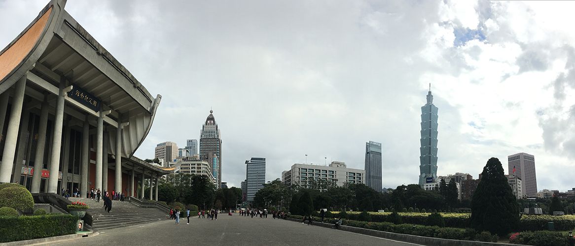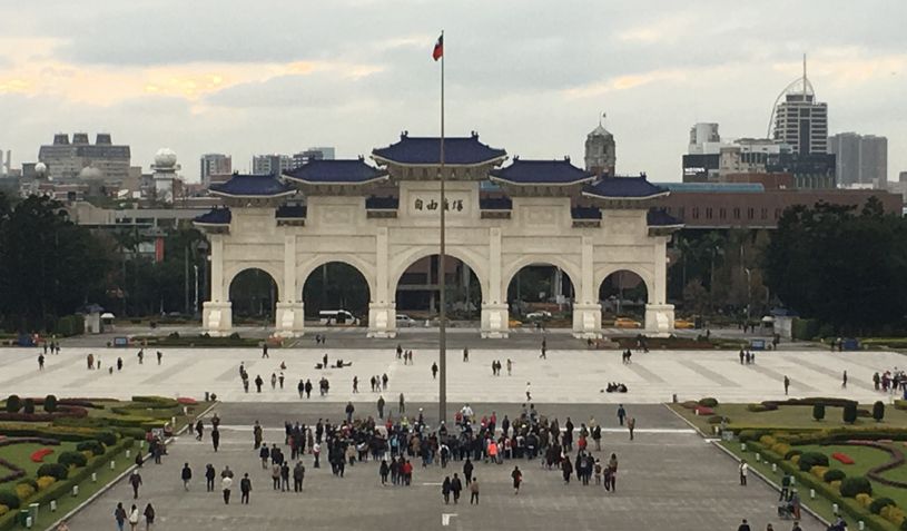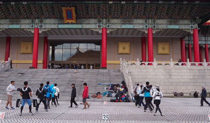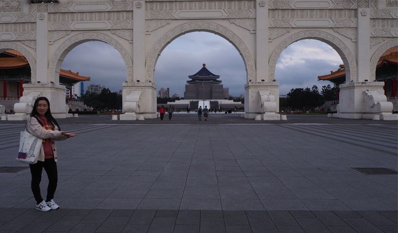 อยู่ที่นั่นจนกระทั่งบ่ายแก่ๆ เราก็กลับ นั่งใต้ดินข้ามกลับมาที่อนุสรณ์สถานเจียงไคเชก (Chiang Kai-Shek Memorial Hall) ใหญ่โตยิ่งกว่าเมื่อเที่ยงอีกค่ะ ทั้งประตูทางเข้าเอย คอนเสิร์ตฮอลสองฝั่งเอย สวนข้างๆ ก็ร่มรื่นย์ มีลานจอดรถใต้ดิน แถมลานกว้างขนาดตลาดนัดสี่ที่เห็นจะได้ ตลาดในข่าว #ป้าทุบรถ สามารถมาตั้งขายที่นี่พร้อมกันหมดยังได้เลยอะ เหลือที่ให้จอดรถด้วยมั้งเนี่ย ส่วนตัวอาคารเขาไม่ได้ปิด แต่ปรับปรุงข้างนอกอยู่พอดี เราไปก็เจอจีนมุง เกาหลีมุงพอดีเหมือนกันเพราะมาทันทหารเปลี่ยนเวร ลงมาเชิญธงชาติที่กลางลานลง