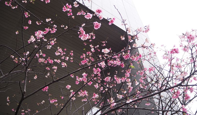 เสร็จจากที่นี่ เราก็ข้ามถนนไป Songshan Cultural and Creative Park ระหว่างทางก็เดินเจอซากุระกำลังบานพอดี ตื่นเต้นดีใจกันอยู่สองคน พี่หวายออกแนวงงว่าที่นี่ก็มีด้วยหรอ ทำไมบานเร็ว ตามประสาคนคุ้นเคยกับญี่ปุ่น ส่วนเรา...ฮือออออออ ซากูร้าาาาจัง เพิ่งเคยเห็นเป็นครั้งแรกในชีวิต คาวาอิเด๊ส แง๊ รัวถ่ายรูปไม่ยั้งซึ่งต้นมันอยู่ริมรั้วสถานีตำรวจ 555555 งง แต่ก็น่ารักดี