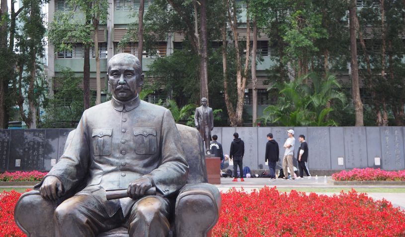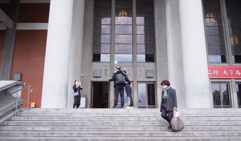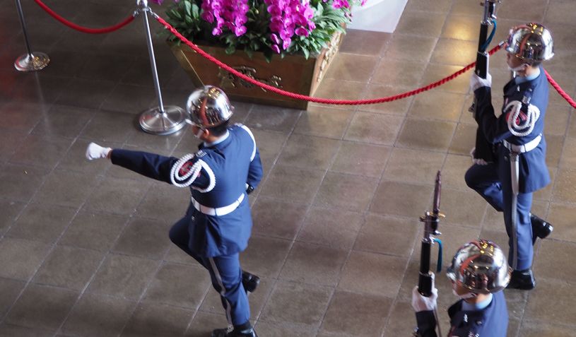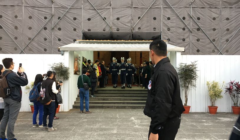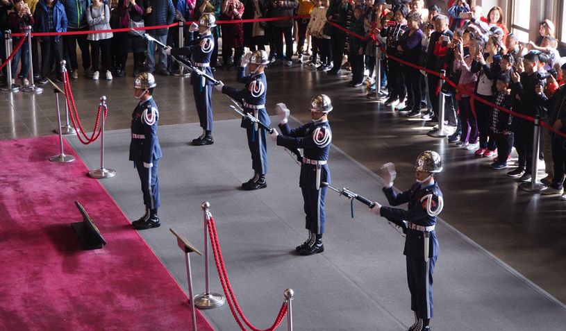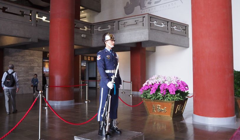 มีทั้งประวัติของพรรคก๊กมินตั๋ง นอกจากนิทรรศการแล้วชั้นใต้ดินยังเป็นห้องเรียนของคนทั่วไปด้วย จะเป็นคลาสพิเศษสอนภาษา วาดรูป ส่วนไฮไลต์ก็ต้องเป็นรูปปั้นดร.ซุนขนาดใหญ่มหึมาบนเก้าอี้ เราเดินมาเกาะระเบียงชั้นสอง ท่านยังสูงเลยเราไปอีกหน่อยนึงแหน่ะ ไม่นานประมาณเกือบๆ บ่ายโมง เราไม่ได้คาดหวังอะไรกับที่นี่เท่าไหร่ แต่ดันมาตอนที่เขาผลัดเวรยามทหารกันพอดีก็เลยได้ดูไปด้วย