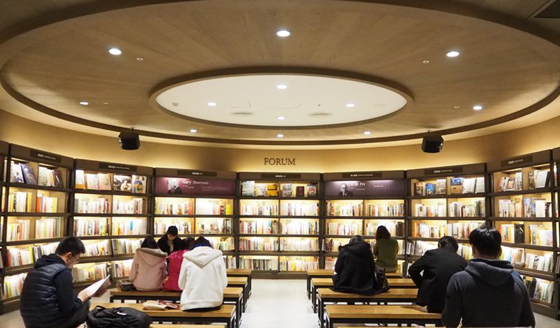 พอเดินไปจนทั่ว ข้างๆ ก็มีตึกบิดโค้งสูงๆ สวยๆ หน้าต่างกระจกเป็นแพทเทิร์น มีชื่ออย่างหรูหราว่า Taipei New Horizon Shopping Complex กับส่วน The Eslite Spectrum สี่ชั้นล่างเป็นห้างตั้งแต่ชั้นใต้ดินซึ่งเป็นชั้นร้านอาหารกับโรงหนัง ชั้น 1-2 ขายเสื้อผ้า ของใช้ต่างๆ ส่วนชั้น 4 คือเด็ด มันคือร้านหนังสือ Eslite ที่เป็นเชนสโตร์ของไต้หวัน คล้ายๆ คิโนะคุนิยะ ซีเอ็ด บีทูเอส แต่ที่นี่ Eslite (มันอ่านว่า เอสไลท์หรืออีลิท ใครทราบช่วยบอกด้วยค่ะ จำเป็นมากๆๆๆๆ)เนี่ย เราชอบมาก เพราะมีหนังสือหลายประเภท ขอโทษนะ...เยอะชิบหายเลยค่ะ ตกแต่งสวย มีเก้าอี้ให้นั่ง ขายของที่ระลึกด้วย เครื่องเขียน แผ่นเพลง โมเดลของเล่น ครบ
