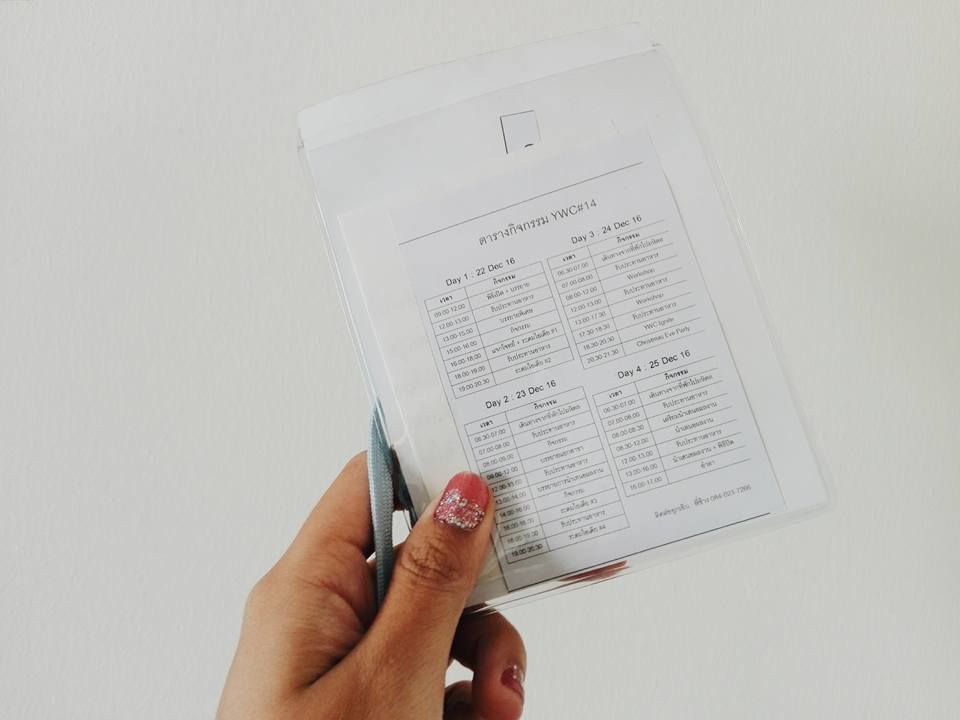 ลองพลิกป้ายชื่อดูก็พบกับตารางกิจกรรมและสิ่งที่ต้องทำตลอดสี่วัน