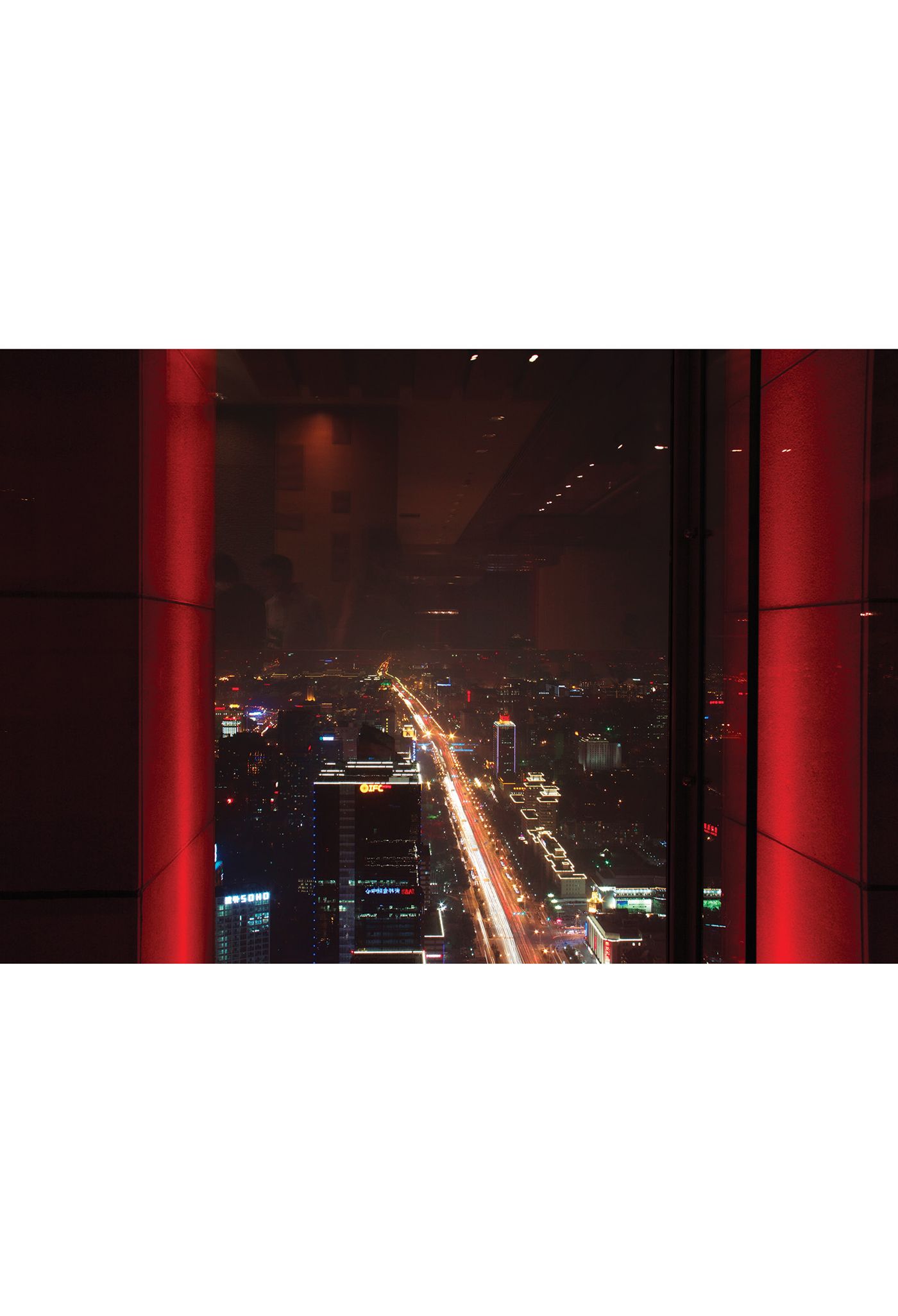 พวกเราขึ้นลิฟต์โรงแรมไปที่ชั้น 63 ผนังเกือบทุกด้านเป็นกระจกใส เหมาะสำหรับแขกที่อยากชมวิวแบบสุดลูกหูลูกตา ฉันมองไปข้างนอกผ่านกระจกบานใหญ่
