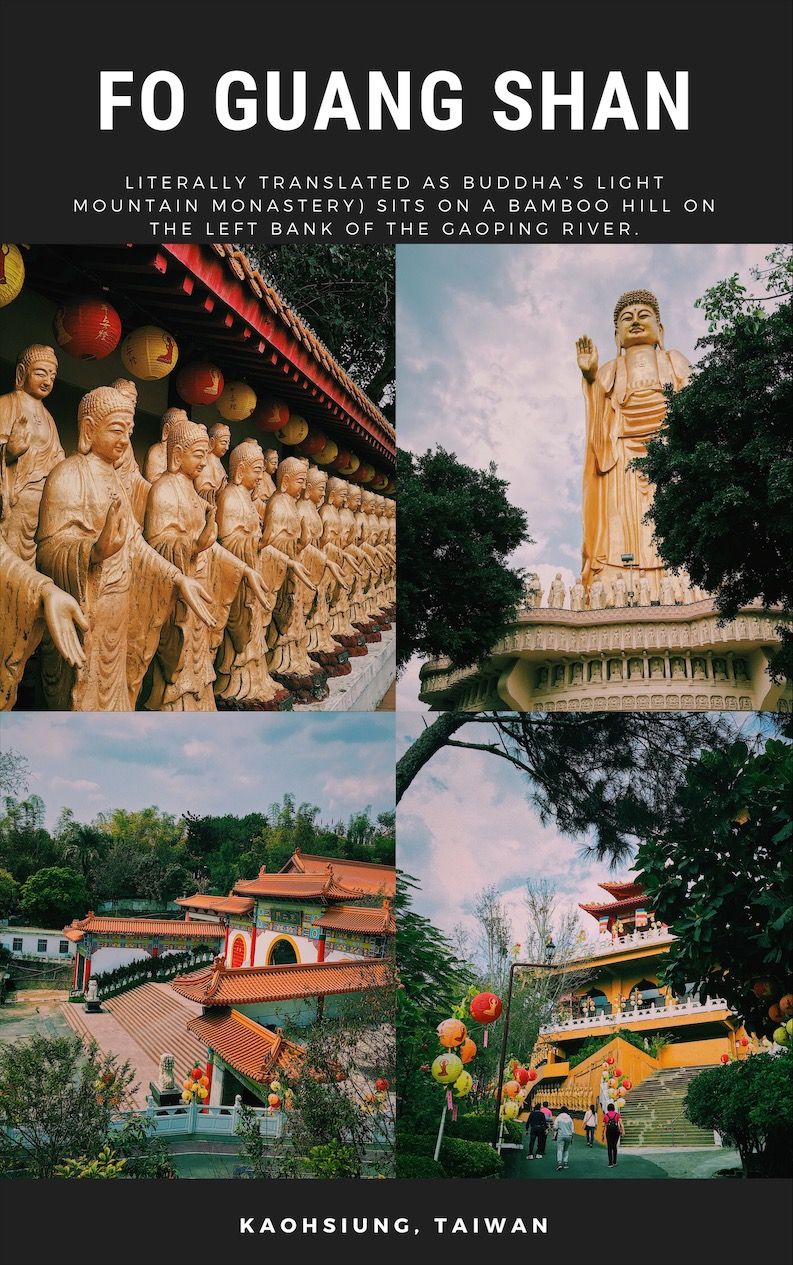 The southeastern face of Fo Guang Shan Monastery features the prominent Great Buddha Land, which is home to a standing Buddha image of 48 metres in height, and 480 smaller Buddha images that surround it. English-speaking visitors may find information and maps in English at the Reception