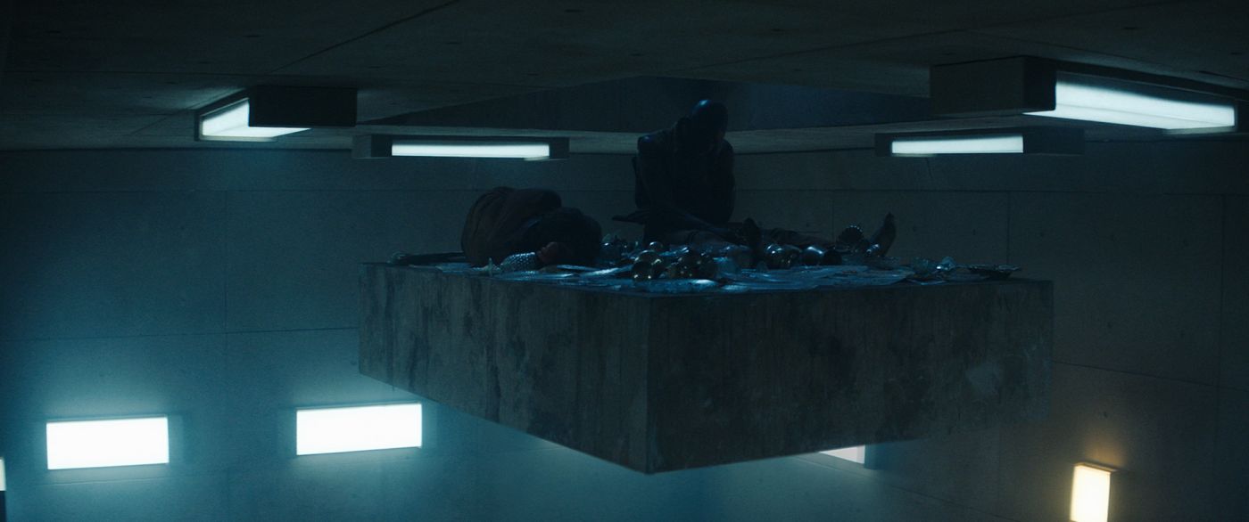 ความตลกร้ายในการจิกกัดพฤติกรรมการกินเพื่อประทังชีพของผู้คนในหลุมยังคงเจ็บแสบได้มากกว่าเดิม เมื่ออาหาร Appetizer สัญชาติฝรั่งเศสอย่างหอยทากอบเนยซึ่งนับว่ามีราคาสูง และเป็นอาหารจานโปรดของโกเรง ได้ถูกนำมาเรียกแทนชื่อของชายหนุ่มในวันที่ตรีมากาซีตัดสินใจว่าจะกินเขาเป็นอาหาร ราวกับห่วงโซ่ที่ทอดต่อกันมาเป็นสายด้วยการนับโกเรงว่าเป็นอาหารอันมีค่าของชายชรา