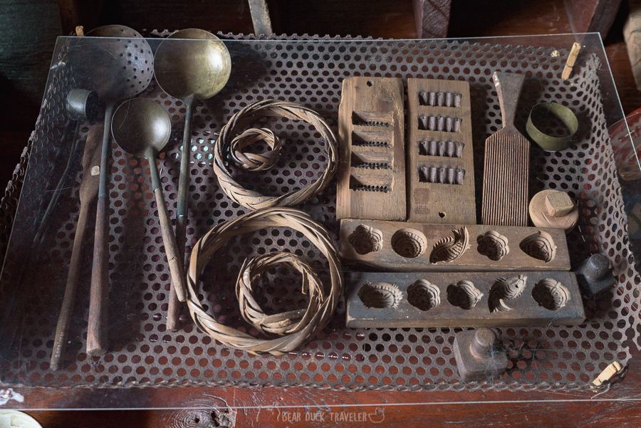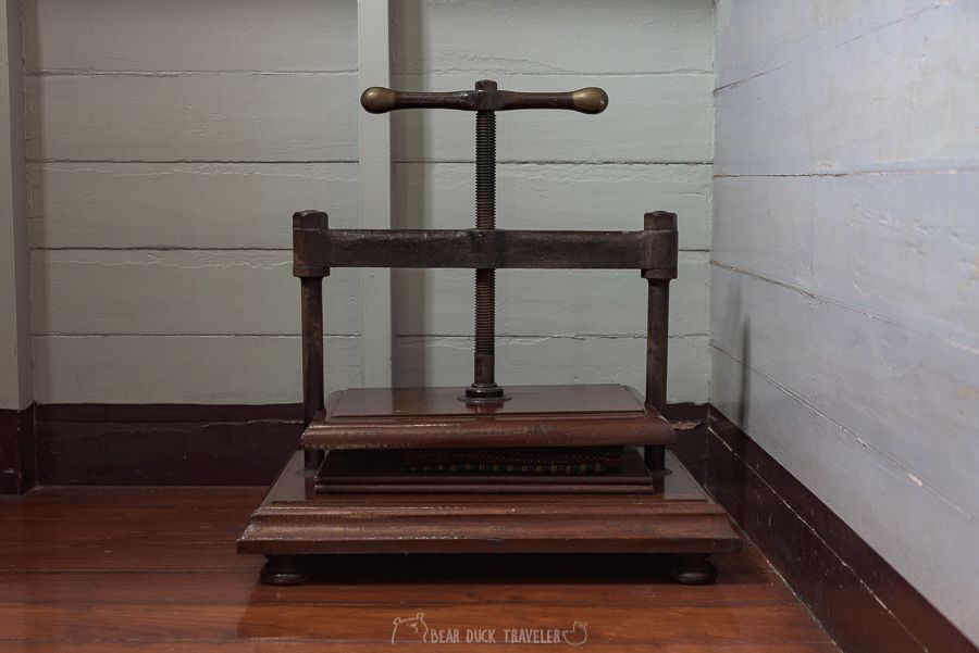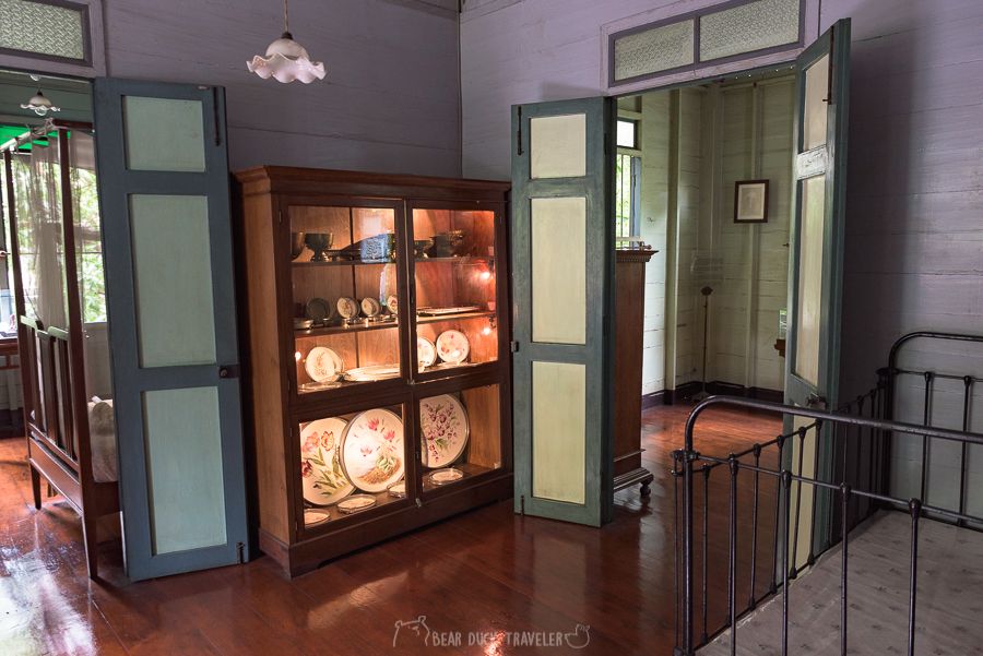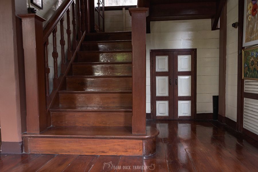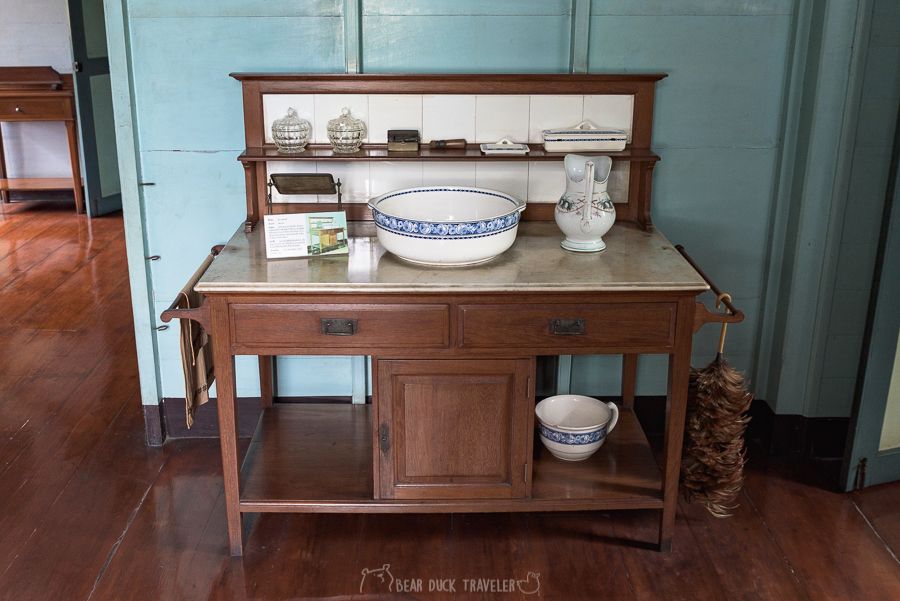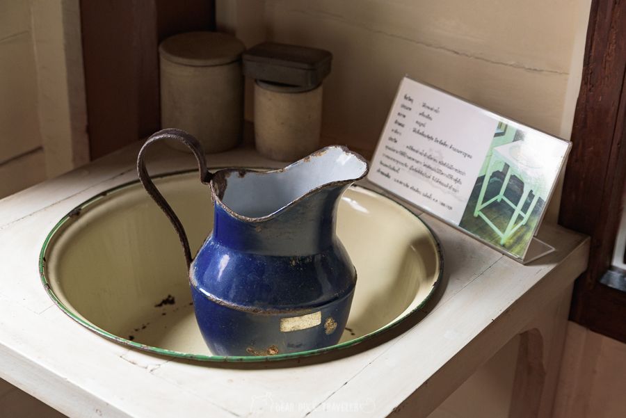 นอกจากโครงสร้างที่สวยงาม สิ่งของภายในหลายชิ้นก็น่าสนใจเช่นเครื่องรีดจีบผ้าตรงบันได เปียโนที่แป้นกดทำจากงาช้าง ห้องน้ำแบบโบราณ