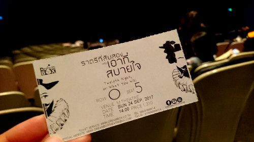 สรุปก็ไปดูจนได้ รอบสุดท้ายเลย ตัดสินใจไปซื้อบัตรหน้างานเลยค่ะ เดี๋ยวพลาดแล้วจะมาเสียใจทีหลัง (เผื่อเค้าไม่รีสเตจ) เริ่มแสดงบ่ายสอง อิชั้นไปถึงหน้าโรงก็อีกสิบนาทีจะบ่ายสองแล้วค่ะ วิ่งปรู๊ดขึ้นชั้นสามไปซื้อบัตรหน้างาน (จริงๆขึ้นลิฟต์นั่นแหละ 555) ไปนั่งชิลๆแป๊บๆ ก็เริ่มแสดงเลย