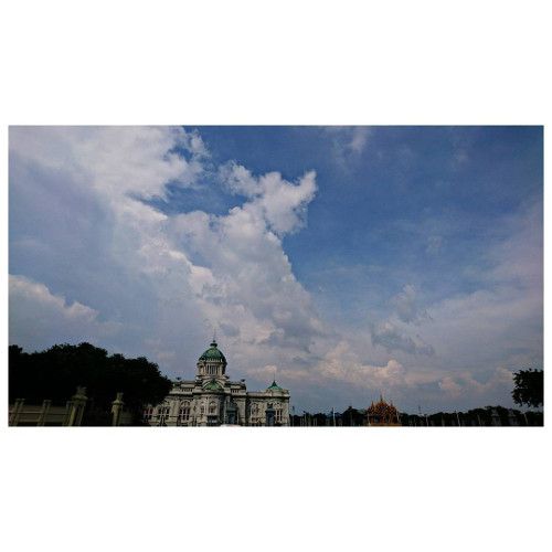 เราเดินมาเรื่อยๆจนมาถึงลานพระบรมรูป หันไปมองฟ้าขณะนั้น สวยดี (อีกแล้ว 555) นั่นแหละค่ะ วันนี้ไม่ได้มีทุกวัน เก็บภาพพร้อมรอยประทับของเวลาไว้ซะหน่อย //เวลายืนอยู่ในลานแดดแรงๆฟ้าใสๆมันรู้สึกดีจังเลยนะ ... เห็นสถาปัตยกรรมตรงหน้าและท้องฟ้าด้านหลังนั่น ฟิลแบบภาพวาดยุคเรอเนซองส์เลยนะ เข้ากันสุดๆ //กดชัตเตอร์มาเล็กน้อยแต่พองาม ^^