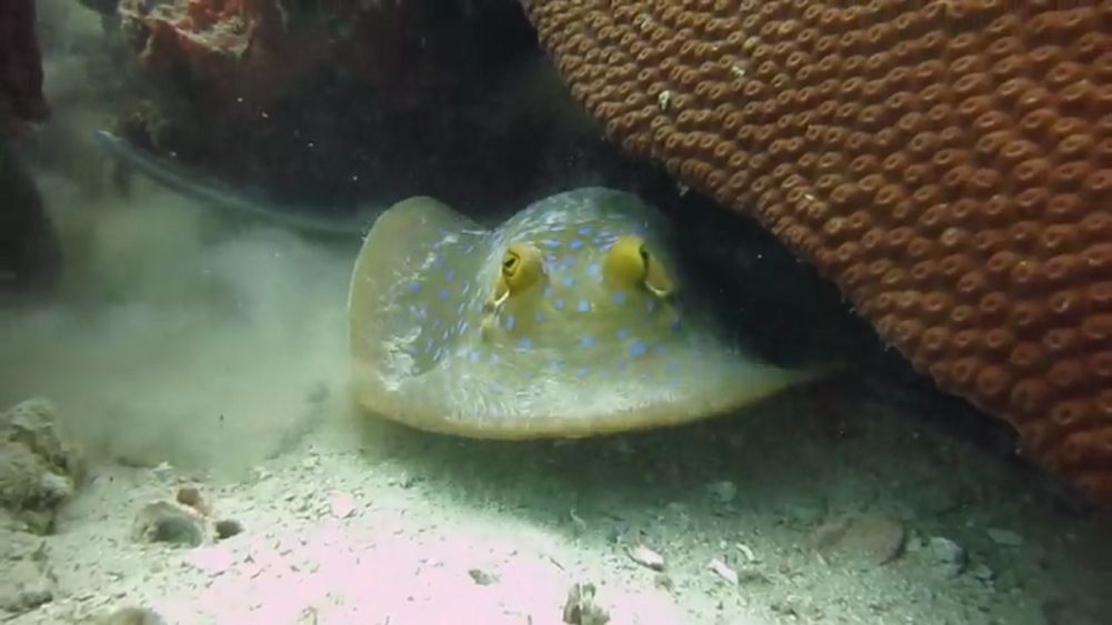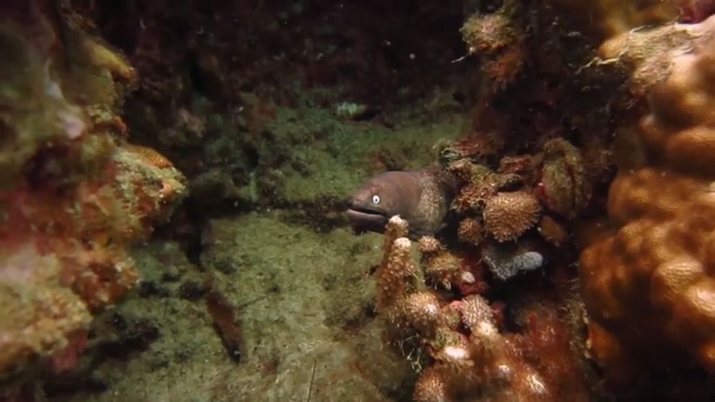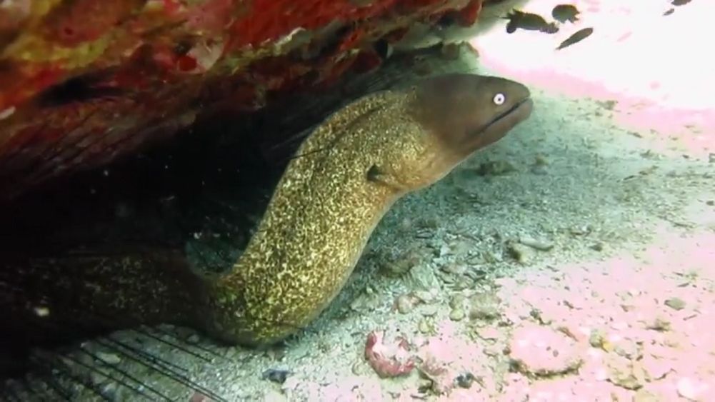 ปลาไหลมอเรย์อีกตัว ติดเม่นทะเลมาด้วยทางซ้าย