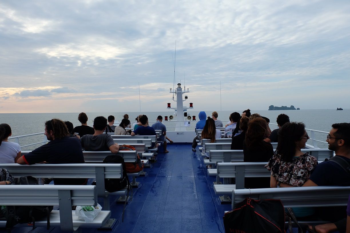 พอถึงเรือ เอากระเป๋าลากฝากไว้ข้างนอกแล้วเราก็เข้าไปในห้อง เป็นห้องแอร์ กระจกทึม ๆ มองไม่ค่อยเห็นข้างนอก ห้องกลิ่นอับ ๆ หน่อย (โชคดีที่เรือขากลับไม่อับแล้ว) และแอร์หนาวมาก หนาวจนต้องออกไปนั่งข้างนอกกับฝรั่งที่อาบแดด 555 (โชคดีอีกที่ขากลับแอร์ไม่หนาวแล้ว) เนื่องจากแอร์หนาวมากและข้างนอกแดดไม่แรง เราเลยออกไปนั่งที่ดาดฟ้าเรือกัน อากาศดี๊ดี รอบตัวมีแต่ชาวต่างชาตินั่งเม้าท์มอย กว่า 50%เป็นคู่รัก (อ้าว กูเหงาเลย .___.) นั่งไปประมาณ 2 ชั่วโมงก็ถึงเกาะเต่าค่ะ (ก่อนถึงเกาะเต่าเขาจะแวะเกาะนางยวนด้วย (เกาะเต่ากับเกาะนางยวนเกือบติดกันเลย) แต่เราไม่ต้องลงนะ นั่งรอเฉย ๆ)