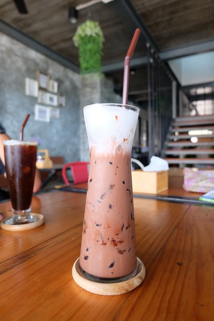 เยื้อง ๆ เซเว่นมีร้านกาแฟร้านนึงท่าทางน่านั่ง ราคาไม่แพงมากด้วย พอ ๆ กับบนฝั่ง เพื่อนอยากกินกาแฟเราเลยมานั่งร้านนี้กันรอเวลา