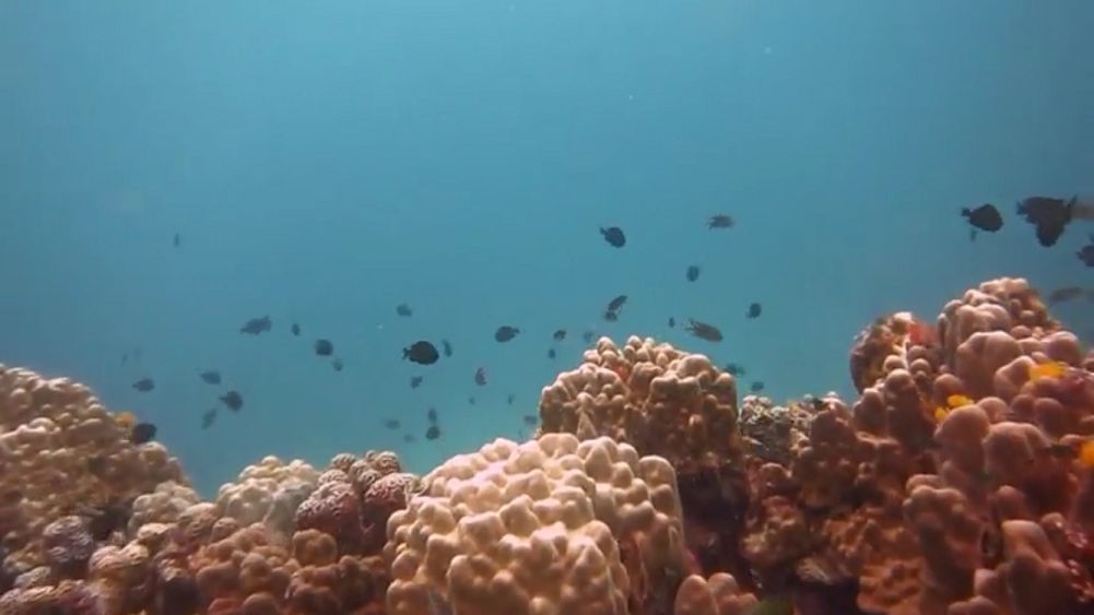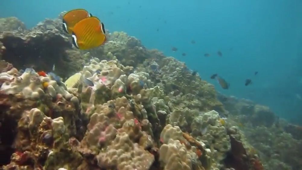 ปลาสีเหลืองคือปลาผีเสื้อชุมพร, สีน้ำเงินกับส้มบนปะการังคือหนอนฉัตร, ส่วนสี chocky pink คืออะไรไม่รู้ แต่สวยดี