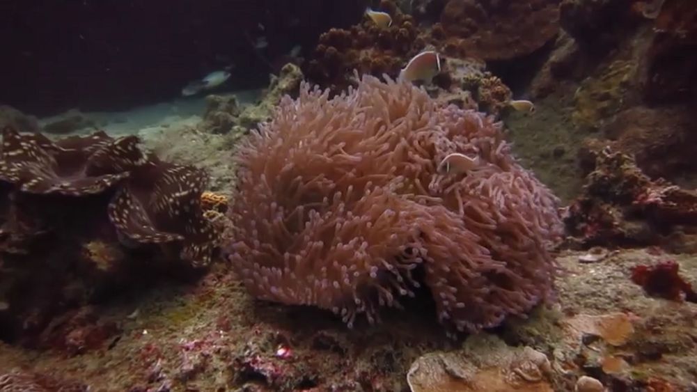 พักกินขนมผลไม้บนเรือ ฟังครูบรีฟซักเดี๋ยวก็ลงไปใหม่ รอบนี้ลงแบบไม่ไต่เชือกแล้ว ค่อย ๆ จมลงไปเองเลย ตอนแรกคิดว่าจะน่ากลัว แต่จริง ๆ ไม่เลย ไม่ต่างจากตอนไต่เชือกเท่าไหร่ รอบนี้ไม่สอบสกิลอะไรแล้ว ว่ายเล่นอย่างเดียว เลยรู้สึกว่าได้อยู่ใต้น้ำนานกว่าไดฟ์อื่น ได้ว่ายวนรอบกองหินใหญ่ ๆ เห็นปลาไหลมอเรย์ เห็นปลาผีเสื้อ ปลาโนรี ปลาหมอทะเล(ที่ชอบทำปากบึน ๆ อยู่ในอควาเรียม) ลองว่ายเข้าไปในฝูงปลาดู สรุปมิชชั่นเฟล ปลาหนี 55555 รอบนี้ช่างภาพมาตามถ่ายกรุ๊ปเราด้วย อยากได้รูปตัวเองใต้น้ำนะ แต่นึกท่าไม่ออก เลยได้แต่บ๊ายบายกล้อง (ภาพที่แคปมาได้เลยกลายเป็นทำท่าเหมือนจะตีกล้อง ไม่ก็โฆษณาแลคตาซอย 5 บาท เพราะฉะนั้นท่านี้ไม่แนะนำนะคะ แนะนำว่าใครอยากได้รูปให้ไปคิดท่ามาล่วงหน้าเลย 5555 เออ อีกอย่าง ตอนนั้นก็ไม่ได้รู้สึกว่า mask รัดเกินนะ แต่ภาพที่ออกมาได้เหมือน mask ดึงหน้ามากอะ จากตาตี่อยู่แล้วตาตี่กว่าเดิม ตาเป็นขีดเลย โคตรตลก เพื่อนเห็นรูปแล้วขำมากอะ คนนึงบอกเหมือนอากาศหมด อีกคนบอกเหมือนพระจีน สรุปรูปกูได้ตั้งเป็นรูปไลน์กลุ่ม เพื่อนเลว 555555)
