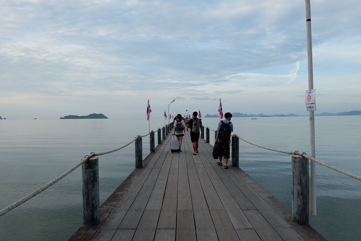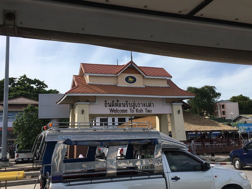 ใช้เวลาเดินทางประมาณ 8 ชั่วโมง ถึงท่าเรือทุ่งมะขามน้อยที่ชุมพรประมาณตี 5 มั้งถ้าจำไม่ผิด คือเกาะเต่าอยู่จังหวัดสุราษฯ แต่ถ้านั่งเรือออกจากฝั่งที่ชุมพรจะใกล้กว่า อ้ะ กลับมาที่ท่าเรือ ที่ท่าเรือมีห้องน้ำให้ล้างหน้าแปรงฟัน แต่ไม่มีที่ให้อาบน้ำนะคะ 555 มีมินิมาร์ทที่ขายของราคาแพงกว่าปกติหน่อย มีร้านตามสั่งที่ราคาแพงกว่าปกติมาก ราคาเท่าบนเกาะเลย นี่ยังไม่ทันได้ไปเกาะเลยนะ แต่เราก็กินค่ะ หิว 555 เวลาเหลือเฟือมาก โอ้เอ้ ๆ ล้างหน้าแปรงฟัน แต่งหน้า กินข้าว อย่างช้า ๆ ก็ยังมีเวลาไปรับลมที่หาดแปปนึง พอเวลา 6.30 เขาก็เรียกให้เข้าแถวขึ้นเรือค่ะ ก็จะต้องเอาบัตรที่ได้รับมาก่อนขึ้นรถมาให้เขา พร้อมเอาบัตรประชาชนโชว์ให้กล้องด้วย แล้วก็เดินตามสะพานไม้ยาว ๆ ไปขึ้นเรือ