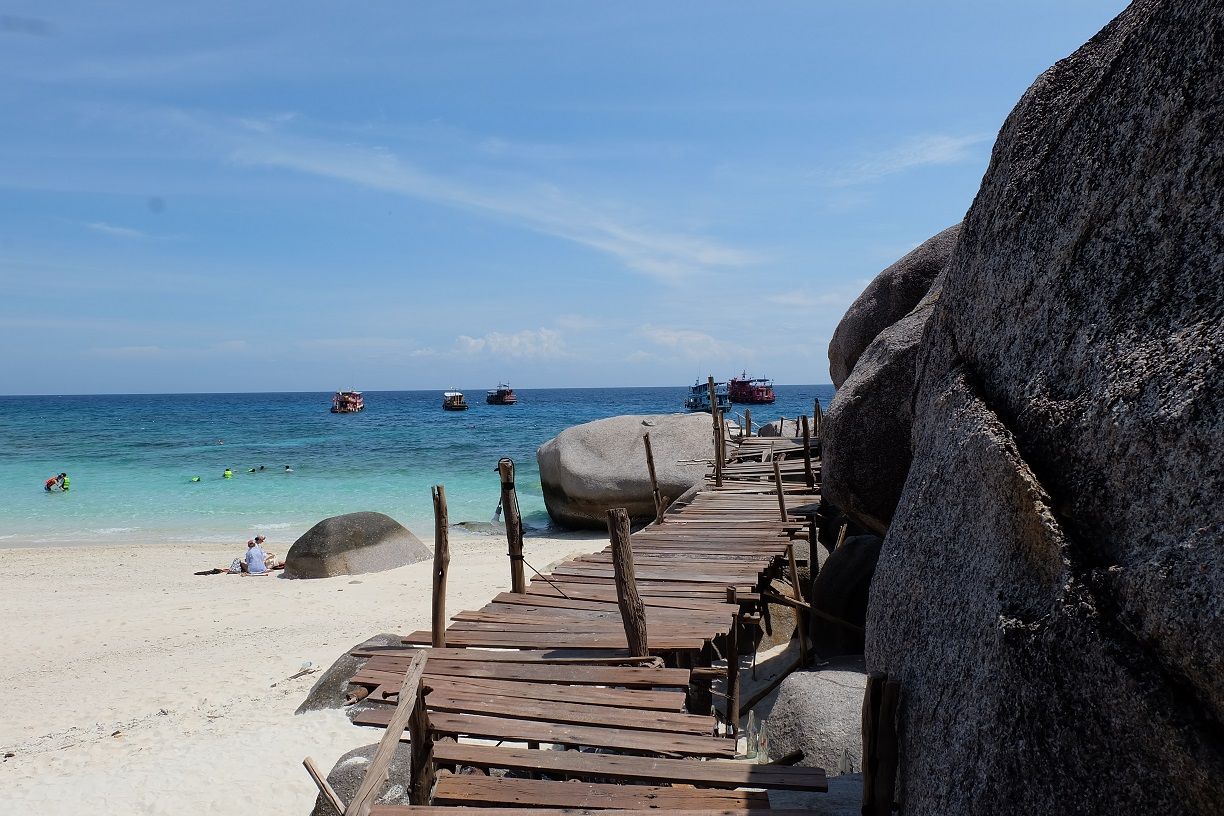พอไปถึงเกาะนางยวนเราต้องจ่ายค่าขึ้นเกาะ 30 บาท ขวดน้ำ single-used กับถุงพลาสติกห้ามเอาเข้านะจ๊ะ ต้องฝากไว้ เพราะฉะนั้น ถ้าอยากพกน้ำไปกินบนเกาะ เอาน้ำใส่กระติกหรือกระบอกน้ำไปค่ะ ขึ้นไปบนเกาะเราก็เดินชมทะเลแหวก ผ่านกลุ่มชาวต่างชาติที่อาบแดดและ snorkel กันอย่างสนุกสนาน ใครอยากร่วมด้วยก็ได้นะคะ แต่เราไม่เอา ร้อนเหลือเกิลลลลพี่จ๋าาาาา แต่ก็เสือกไปขึ้น viewpoint งงมะ 555 ถ้าไม่ไปก็ไม่มีไรให้ทำแล้วอะ ไม่รู้มาทำไม