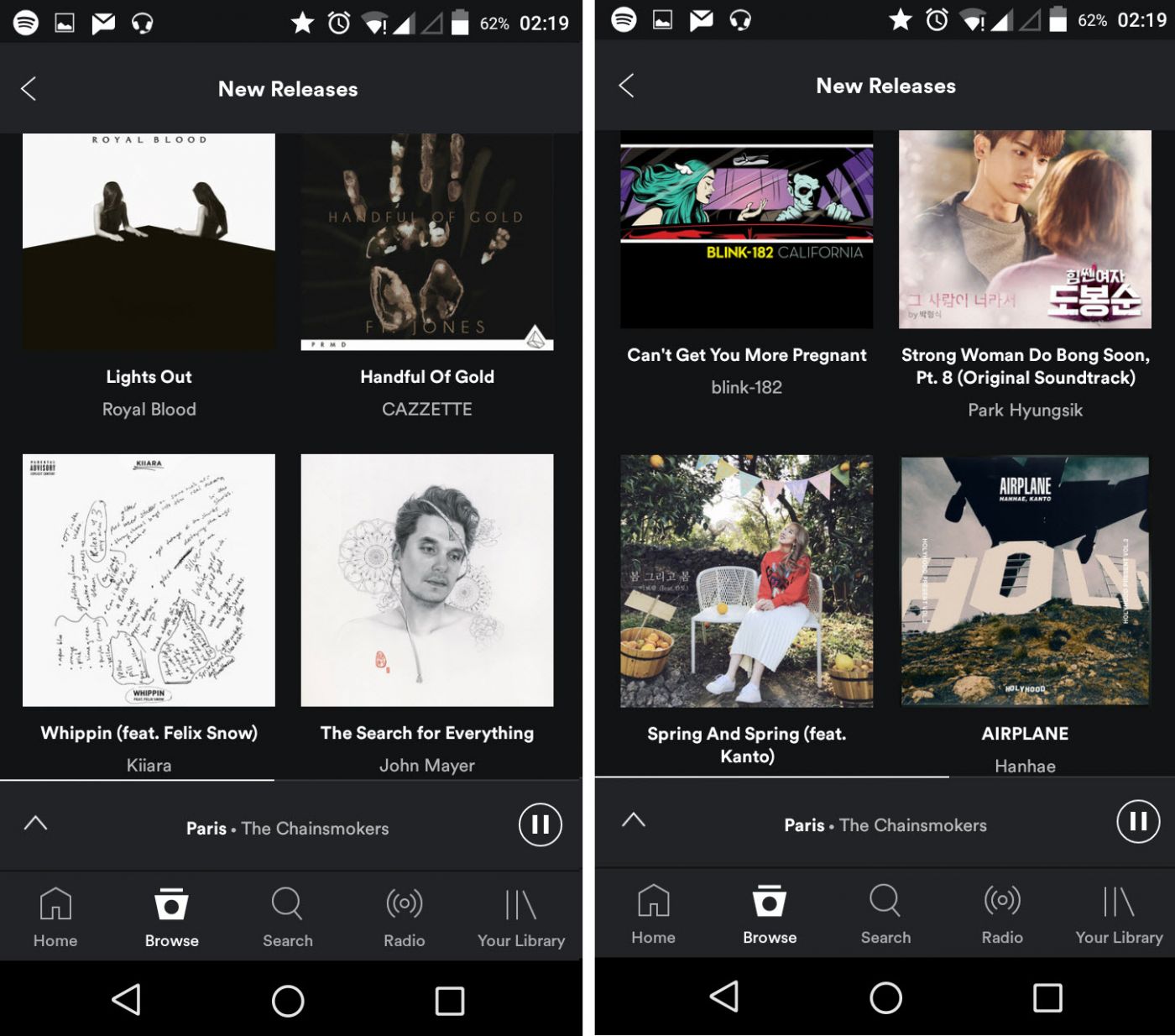 8. New Release เพลงเข้าใหม่วันนี้เพลงเยอะมากกกกกกกกกกกกกกกกกกกกกกกกกก ทุกวัน แต่ส่วนใหญ่จะแนะนำวงดังๆก่อน มีรวมเกือบหมดทุกแนวที่ส่งเพลงลง Spotify เพลงเกาหลีก็เยอะมาก เพลง Cover ก็เยอะด้วยเช่นกัน
