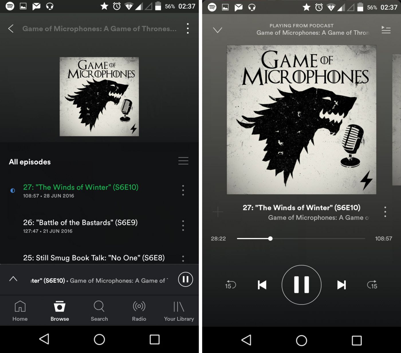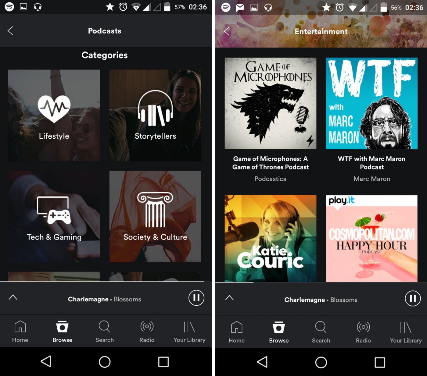 ซึ่ง Podcast ใน Spotify นั้นแม้ไม่ได้เยอะมากอลังการ แต่ก็ถือว่าเยอะและหลากหลายพอสมควรสำหรับแอปฟังเพลง มีคอนเทนต์หลากหลายค่ะ ทั้งหนัง,เพลง,เรื่องตลก,นิทาน,เรียนภาษา,ข่าว,กีฬา,วิทยาศาสตร์ ส่วนตัวชอบนอนฟัง Podcast Poem ค่ะ แบบจะเป็นเสียงคุณลุงมาอ่านกลอนรักหรือกลอนทั่วๆไปแต่อ่านออกเสียงสำเนียงสูงต่ำแบบในหนังเลย เพลินมาก 555555