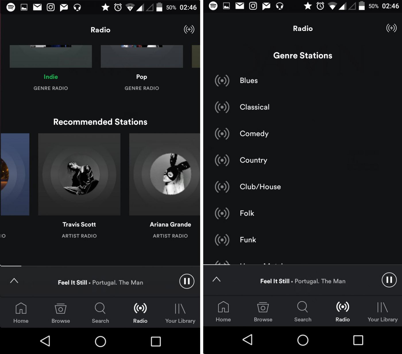 - Genre Stations สถานีเพลงแบบแยกแนว ไปจนถึงแยกยุคของเพลงด้วย มีตั้งแต่ 00s-50s