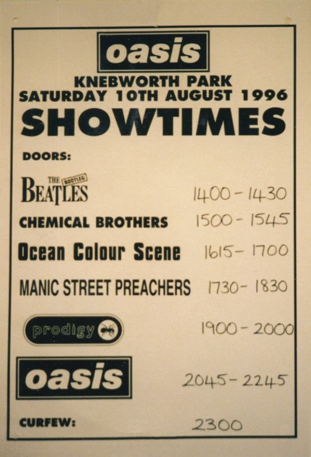 (ส่วนที่อาจจะสะใจสองพี่น้องเป็นอย่างยิ่งคือ Genesis ก็มาเล่นที่ Knebworth เหมือนกันในปี 92 แต่จำนวนผู้ชมนั้น Oasis ทำลายสถิติกระจุยกระจายคือ จำนวนคนมาชม Genesis ในคราวนั้นมีเพียง 90,000 แต่เดาว่า ณ จุดนั้น โนลกับเลียมมันไม่สน ฟิล คอลลินส์แล้วด้วยซ้ำ Knebworth เป็นที่จัดคอนเสิร์ตใหญ่ๆมากมายของอังกฤษในยุคนั้น คอนเสิร์ตใหญ่ครั้งสุดท้ายของ Queen ก็จัดที่ Knebworth เช่นกัน)