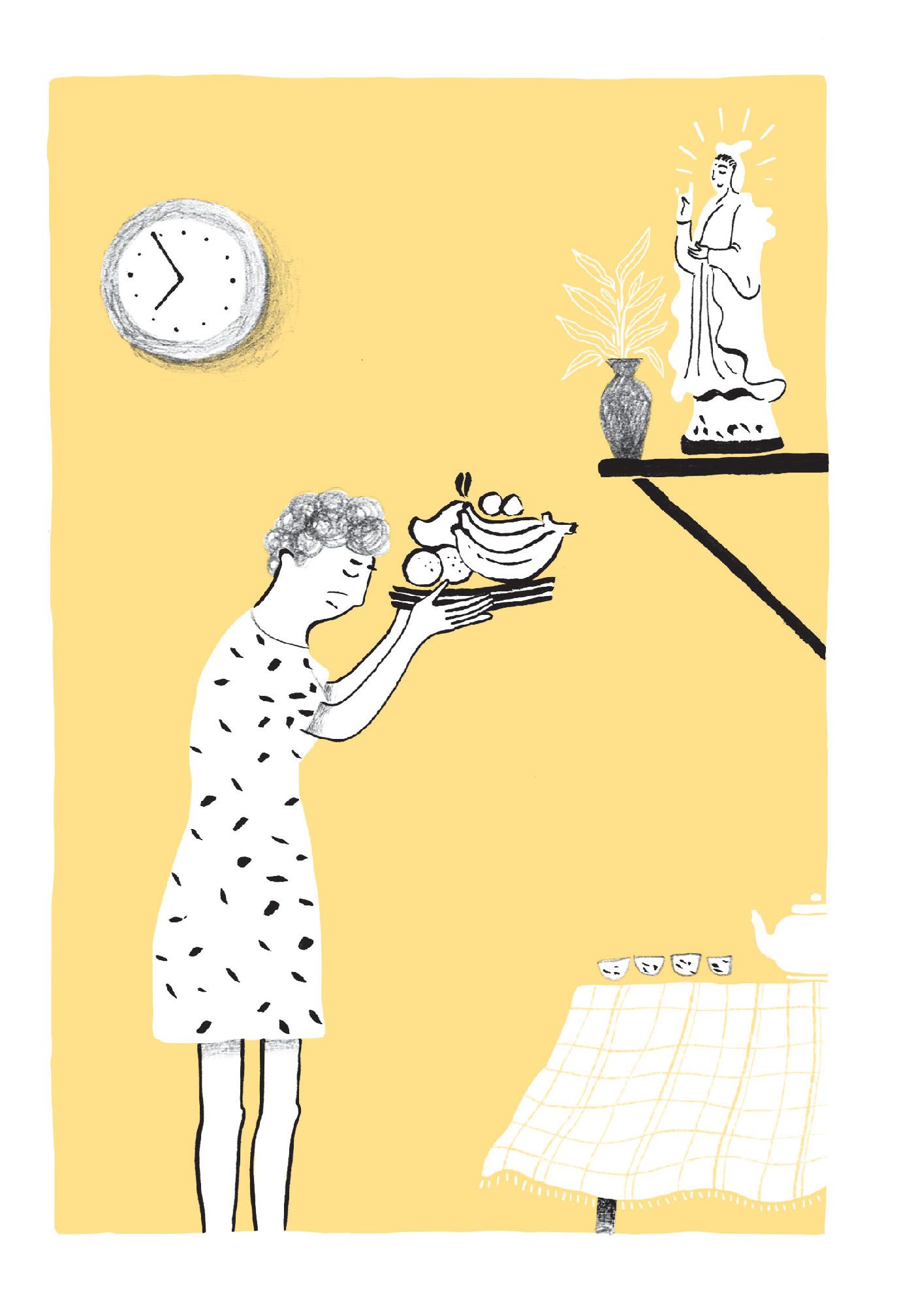 ความศรัทธาในเจ้าแม่กวนอิมของอี๊นั้นมีมาก่อนที่ผมจะเกิด และก่อนที่เราจะได้มาอยู่ด้วยกันเสียอีก ไม่ใช่เพียงแค่เจ้าแม่ฯ ที่ตั้งอยู่ในบ้าน อี๊มักจูงมือผมไปตามศาลเจ้าใกล้บ้านเพื่อจุดธูปขอพร บางครั้งเรานั่งรถไปไหว้กันไกลถึงต่างจังหวัดและบางคราเราบินไปไหว้กันไกลถึงต่างประเทศ