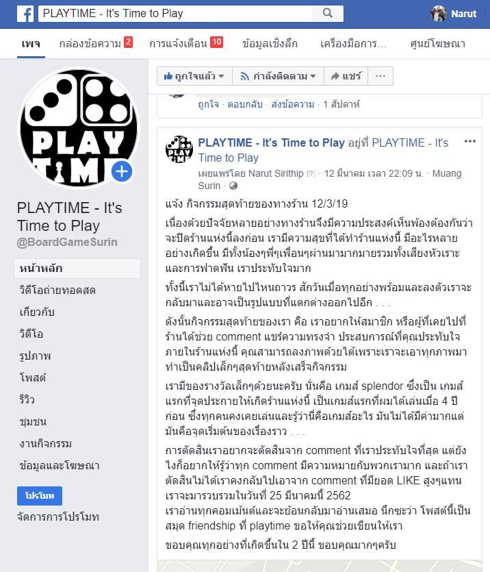 บันทึกไว้ว่าเป็นหนึ่งในความฝันเล็กๆที่ทำสำเร็จ  9 DEC 2016 - 15 MAR 2019 ร้าน PLAYTIME  BOARD GAME CAFE
